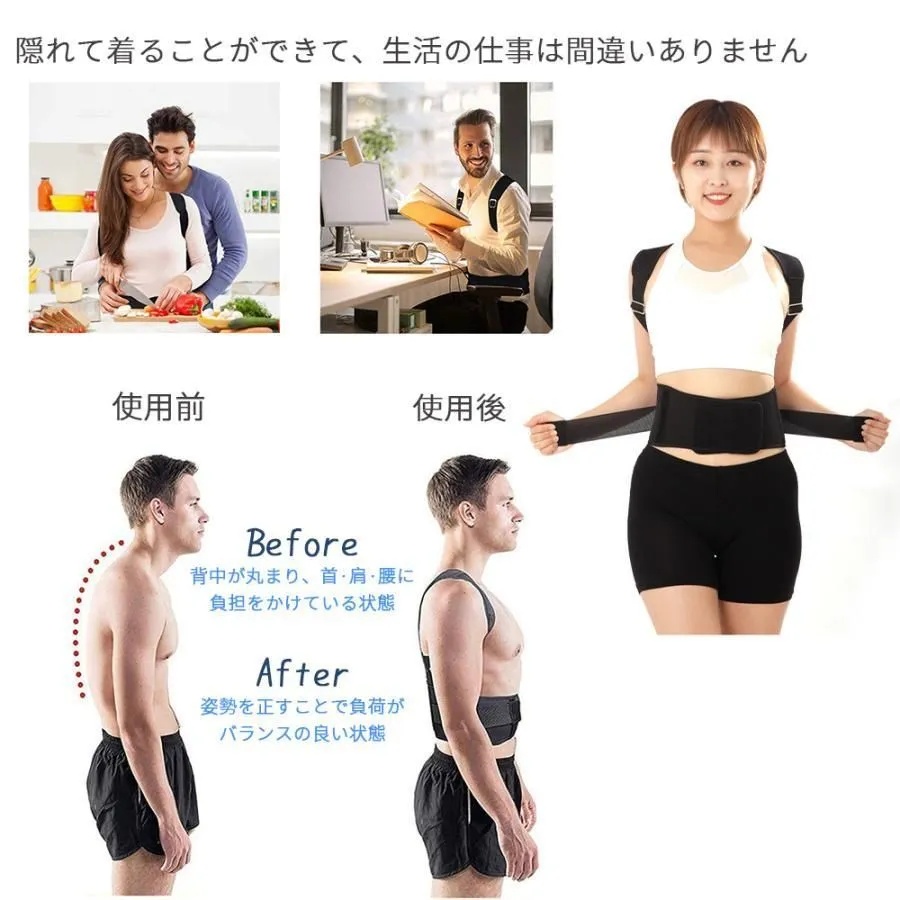 ベルトの長さを自由に調整できるため、子供から大人まで幅広く使用可能。家族みんなで姿勢ケアができます。