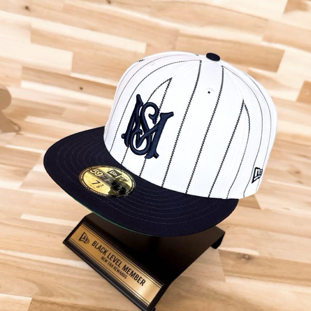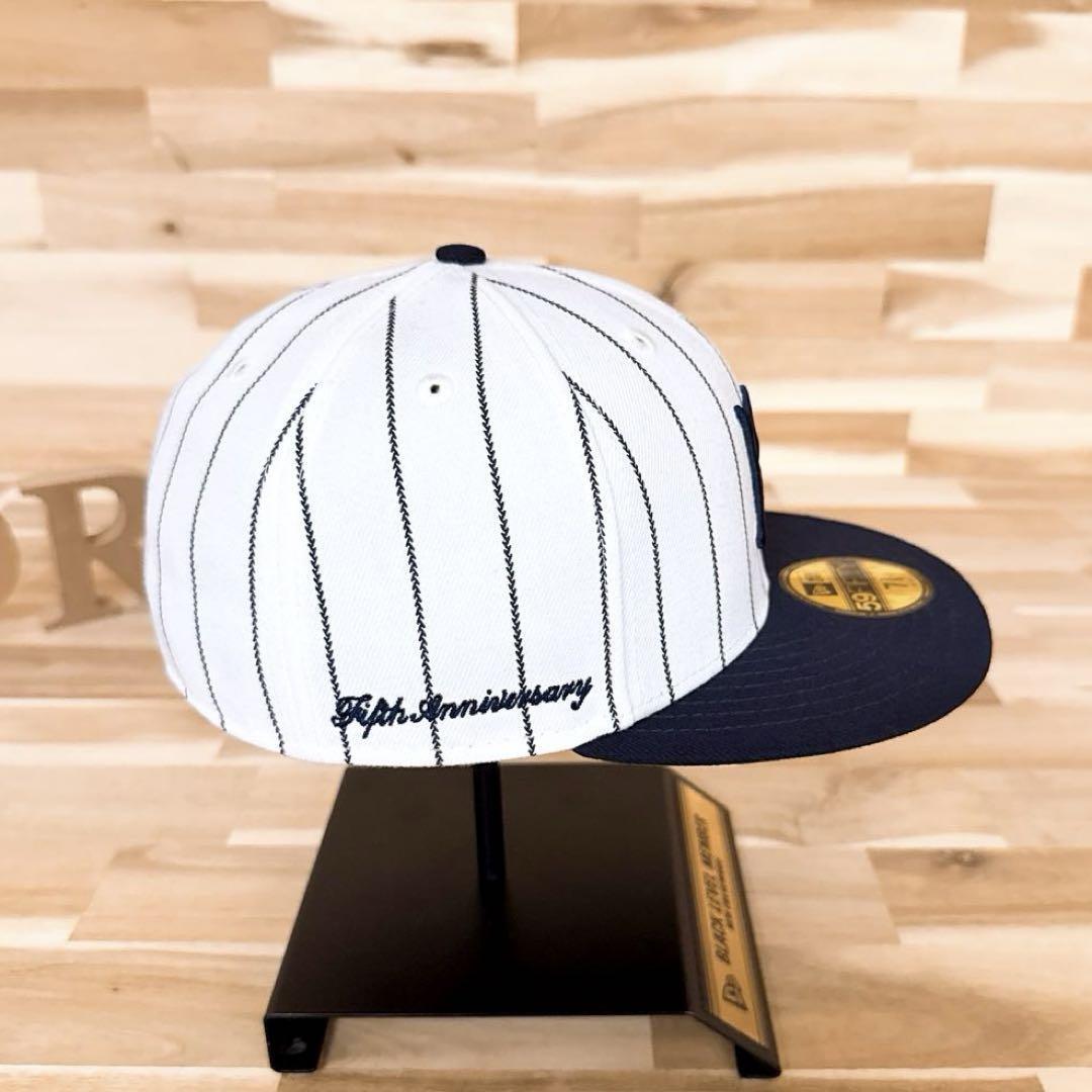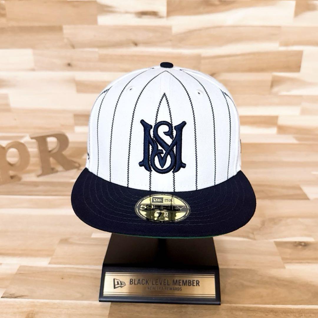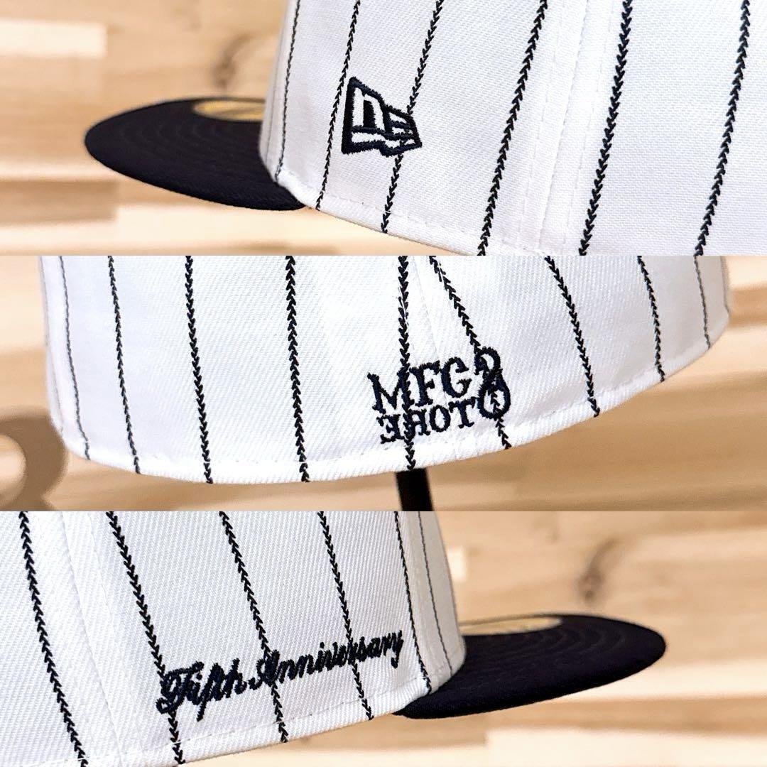 * 5周年記念 *ホワイト×ネイビーのストライプに映える存在感抜群の「MS」ロゴ刺繍をレイアウト。バックには、ブランドネーム刺繍、サイドに5周年を記念する「5th Anniversary」などの特別感のある刺繍が施され、360度どこから見ても目を惹くルックスに。ストリートコーデにひと味違う個性を演出してくれる、とてもクールなNEW ERA × MFC STOREコラボのキャップです。既に完売。生産も終了しており、オークションやフリマでも見ることの少ないレアなアイテムです。