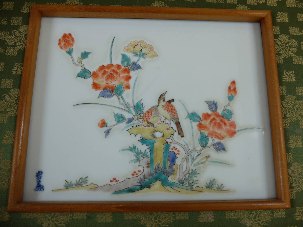 | ★☆十三代 柿右衛門 錦牡丹花鳥文 陶額☆★ | |