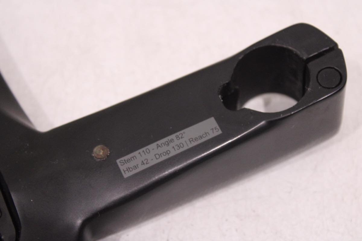 | 仕様 | ステム長: 110mm 82度 計測重量(掲載写真状態): 389g 実測サイズ: ハンドル幅 ブラケット芯-芯: 400mm エンド芯-芯: 400mm ドロップ: 130mm リーチ: 75mm |