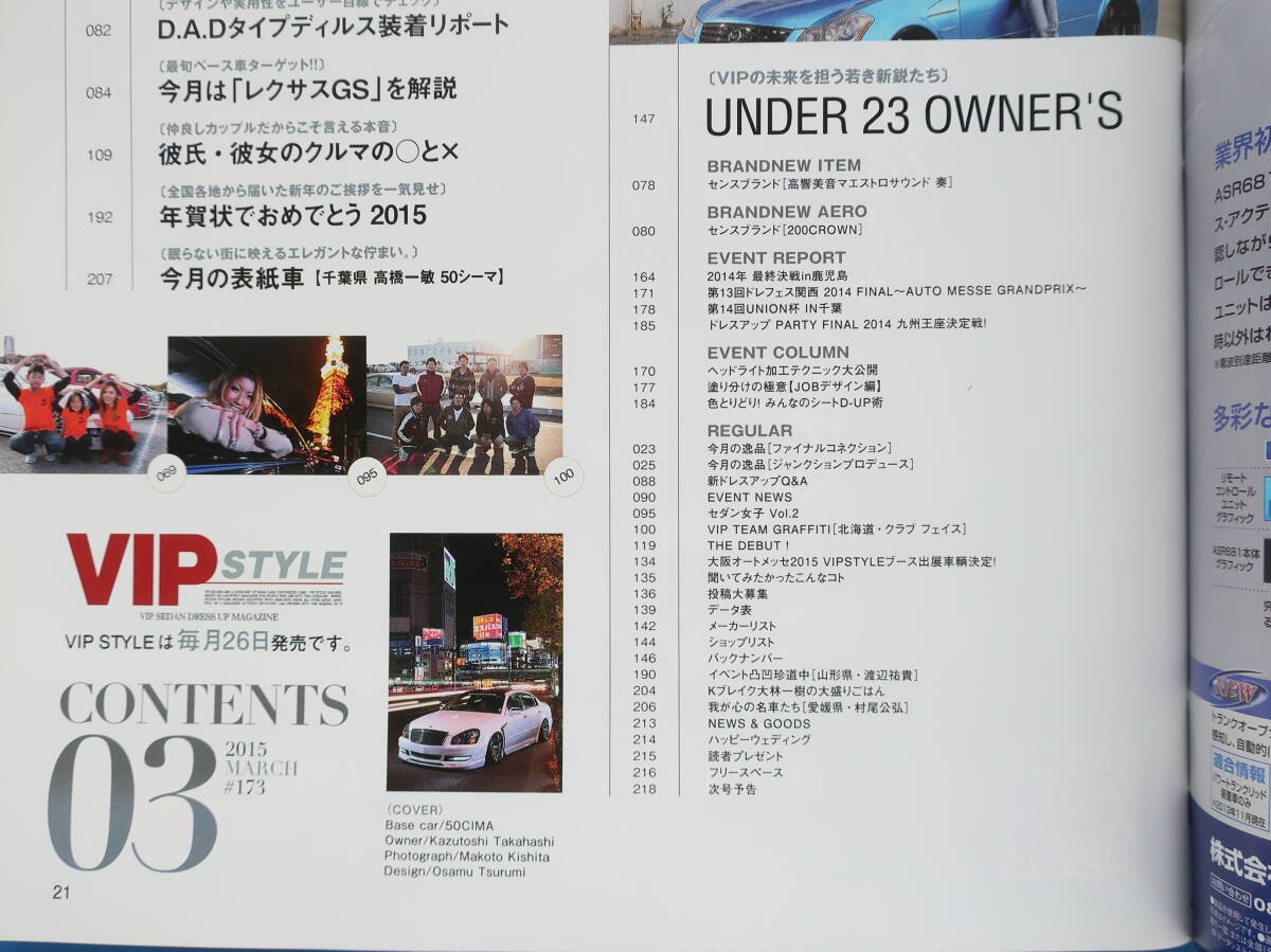 | VIP STYLE ビップスタイル 2015年3月号 Vol.173/高級セダン改造カスタムカー車高調ドレスアップ実車/特集:東京オートサロン2015/シャコタン | ||||