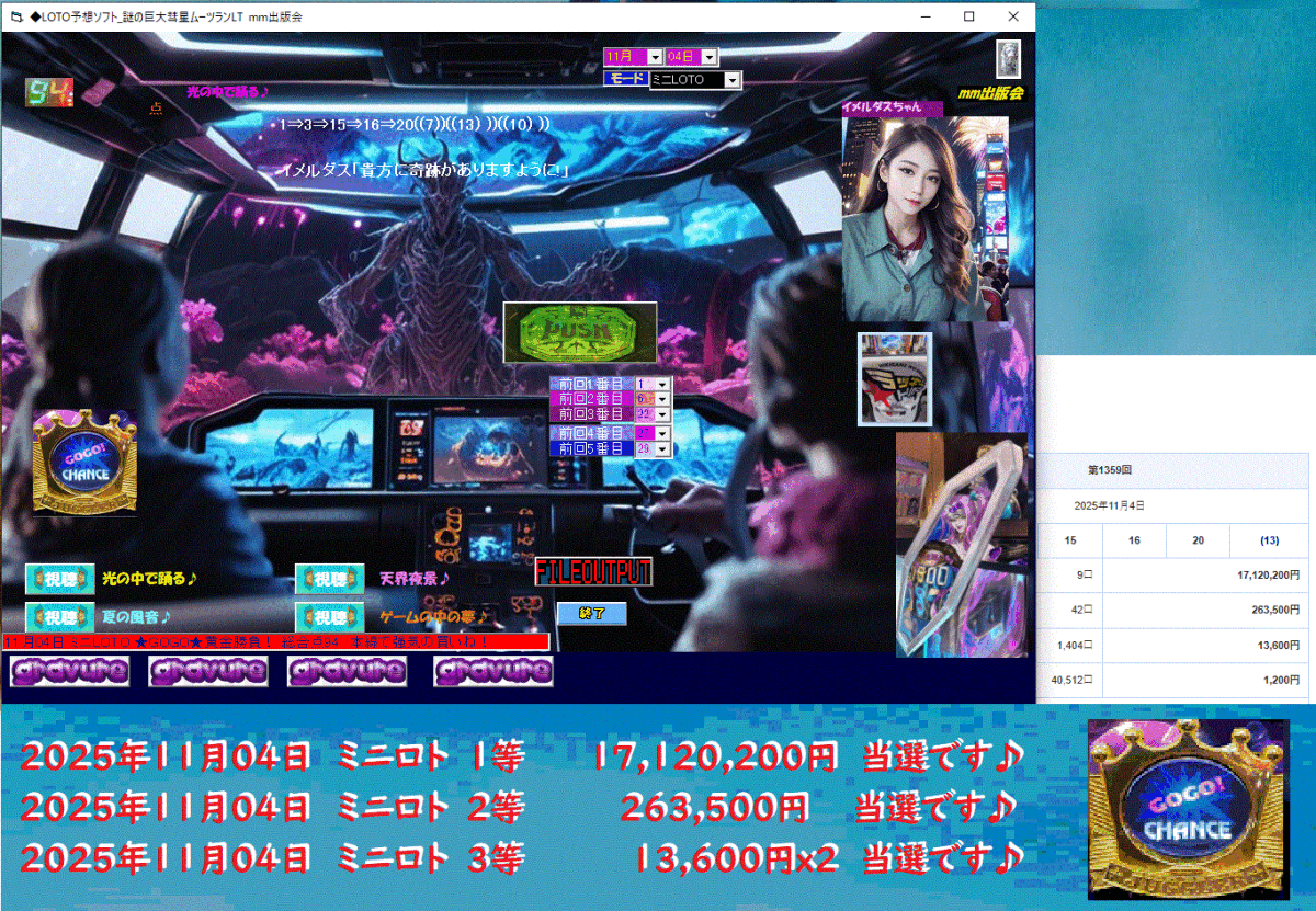 [◆LOTO予想ソフト_謎の巨大彗星ムーツランLT]イメルダス「今日も期待するわよ♪」
