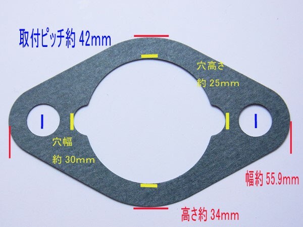 | ■三菱純正品です。2枚セットでお届けします。 GMシリーズやGBシリーズで広く使用されています。 形状が合えば、他形式や他メーカーでも使用ができます。 ※同型の機種でも形状が違う場合があります。画像にてよくご確認ください。 ■キャブレターを取り外した場合は交換をお勧めします。 目に見えない破れや劣化でも調子が上がらないことがあります。 ■サイズ ・厚み:約0.3mm ・横幅:約55.9mm たて:約34mm ・中心穴サイズ:横:約30mm たて:約25mm ・取り付け穴ピッチ:約42mm ■お使いのモニターや照明器具等で実際の色とは若干異なって見える場合もございます。多少の誤差はお許し下さい。 ■写真に掲載のもの以外は原則付属致しませんのでご注意下さい。 ■キャブレター周辺部品は ご覧頂けます。※他にも新品の修理パーツ多数取り扱っておりますコチラから ■同シリーズの商品でも、製造番号により形状が異なる場合があります。 写真にて形状などをよくご確認下さい。 ※「○○」に合うかなどの質問につきましてはお答えできない場合があります。 形状やサイズにつきましては、出来るだけわかりやすくご返答いたします。 ご不安な場合は一度ご連絡をお願いします。 |