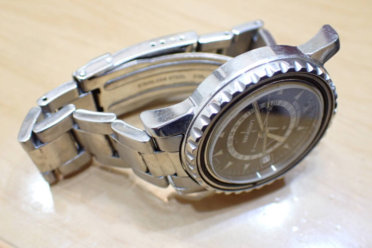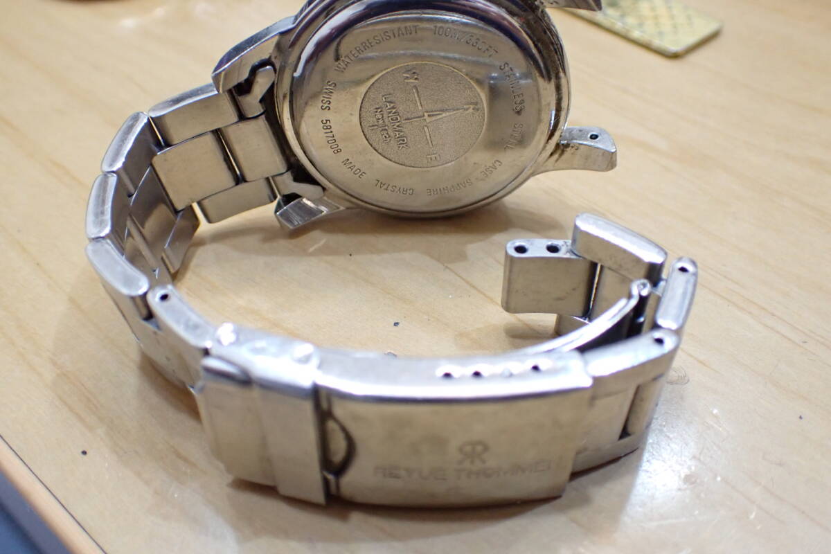 REVUE THOMMEN/レビュートーメン ランドマーク メンズ腕時計です。 貴重なレビュートーメンのランドマークです。 ケースやブレスにスレあります。 ガラスや文字盤は、綺麗です。 ベルトは12時側の留め金がなくなっています。 ほか写真でご確認ください。 電池は切れているようです。 新しい電池を入れての確認は行っておりませんので、ジャンクでお願いします。 ケース径:約34mm ・他にいろいろ出品しています。 同封可能です。 !オークション終了後、24時間以内に「お取引を始める」ボタンをクリックして取引をスタートして下さい。 取引のスタートが無ければ削除します。必ず厳守してください! 「新規ID」「直近で悪い評価が多い」「過去に落札代金未払い・キャンセル歴がある」「良い評価を購入した履歴のある」方のトラブルが非常に多いです。 当方が、お取引に支障があると判断したID(特に新規ID)は即削除します。 ●ジャンク品と記載の物の商品到着時の動作保証はありません。 ●付属品等は、写真に写っているものですべてです。 | ||||