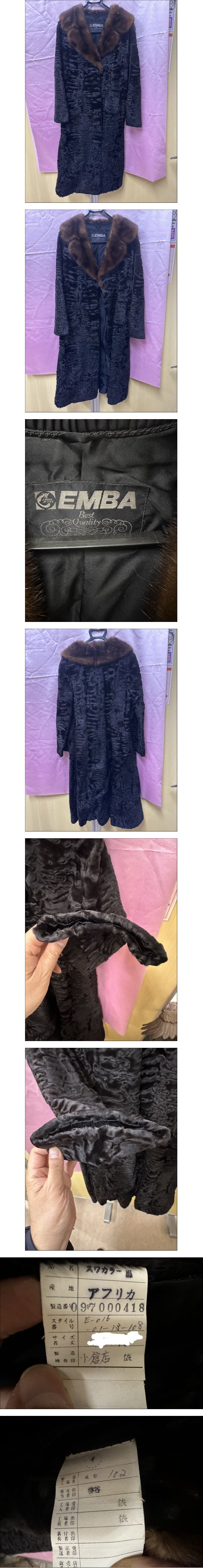 | 【中古】 EMBA エンバ スワカラ レディース ロングコート 毛皮 ラム 約108cm【現状品】 | ||