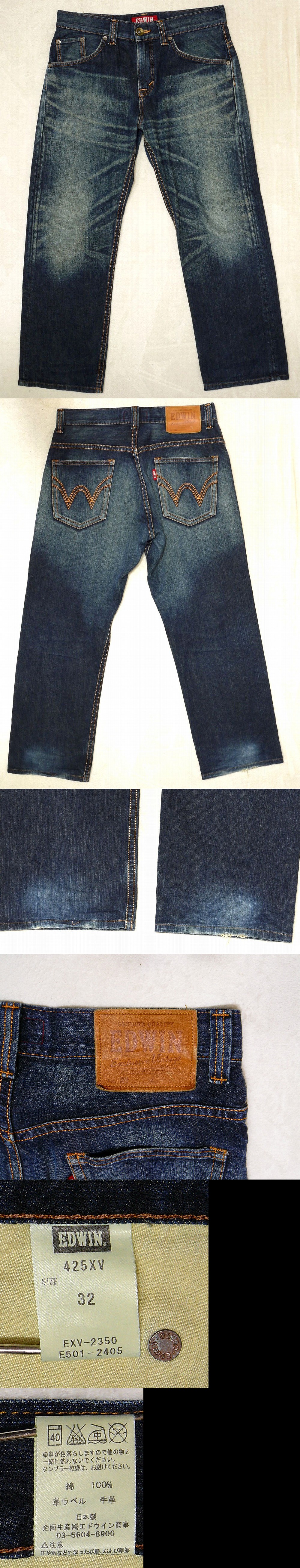 ☆ご覧いただきありがとうございます。 【ご入札される方は必ずコメント欄も含めお読みください。】 ■ ■ ■ ■商品詳細■ ■ ■ ■ 品名: EDWIN 425XV (エドウィン 425XV) 素材: 綿100% シルエット: ストレートシルエット(レギュラーストレートに近い) ストレッチ: ストレッチ素材ではありません サイズ: W32(ウエスト) 品番: EXV-2350 E501-2405 サイズは必ず実寸でご確認ください。 実寸