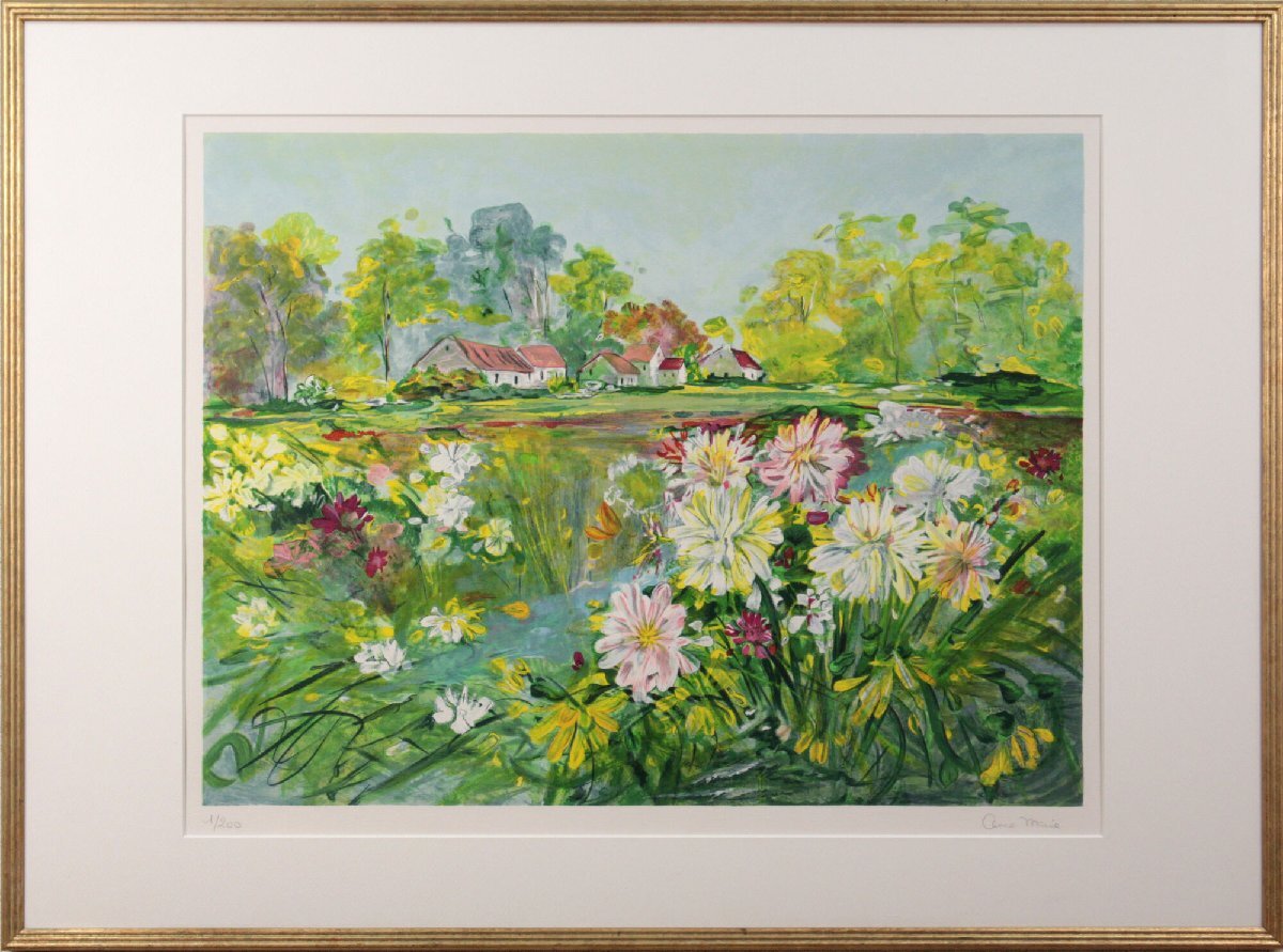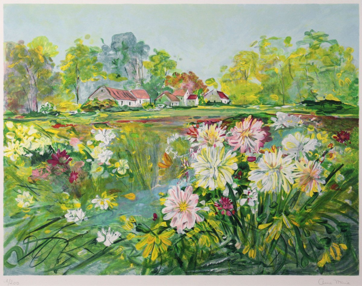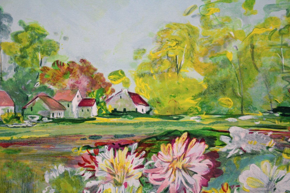 生き生きと描かれた花々と、奥に見える赤い屋根の可愛らしい家| 出价者 | 信用 | 价格 | 时间 |
