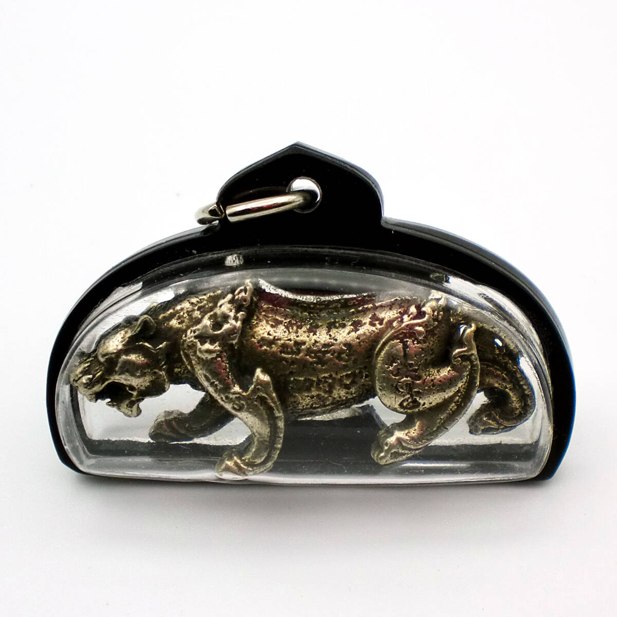 タイでは虎は強靭さと権威のシンボルとされており、このプラクルアンの持ち主に虎の様にパワフルで威厳をもたらし、災い、黒魔術を遠ざけるとされています。 権威、自己肯定、カリスマ性を求められるビジネス・リーダーや兵士などにSua Yant は広く支持されています。 知り合いのタイ人から譲り受けたもので製造年等の詳細は不明です。 サイズ: 5.2 x 3.2 x 1.8 cm 重さ: 約26 g [215_4492] |