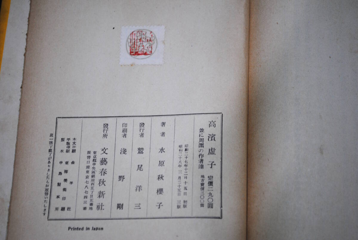 【売切り屋】高濱虚子 水原秋桜子 並に周圍の作者達 装幀山本丘人 昭和28年三版 文芸春秋新社 俳句 高浜虚子 古書
