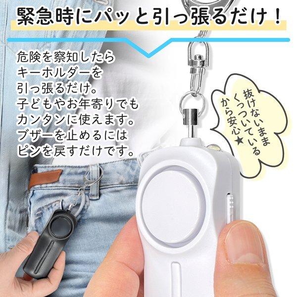 周囲に危険を知らせられるよう超爆音130dBのブザーを内蔵。