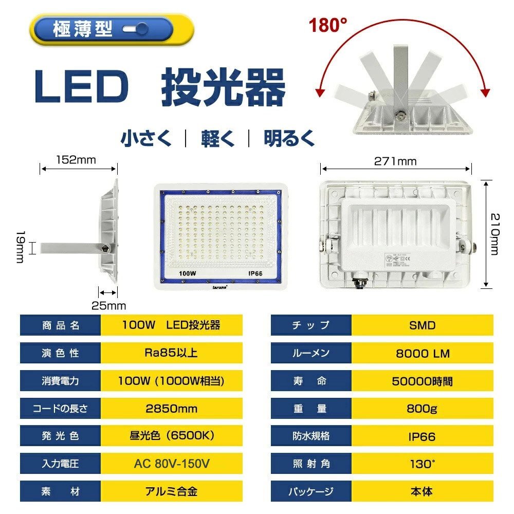 ◆軽薄化LED投光器: 1KG未満の軽量だから壁への負担を掛けずに壁掛けが可能、駆動内蔵設計で投光器の厚さはわずか2.5CMでよりスッキリと設置できます。 ◆高品質&長寿命: 動作環境-30℃~+60℃、湿度90%以下、どんな天気でも動作可能。耐寒性耐熱性に優れているの上、50000時間の長寿命を持つ ◆超高輝度投光器: 優高輝度LEDチップを搭載で明るさは抜群、ハロゲン、水銀灯より80%消費電力を節約できます。 ◆IP66ラベルの防水性能: 密封性に優れ、IP66相当の防塵防水性能を実現!場所を選ばず様々な用途の照明に使えます。 ◆驚きの長寿命: 本製品は50000時間以上の長寿命で、他の商品の2000時間を遥かに凌駕します。 ◆照射角度調整可能: 回転支えを使えて、お好みに照射角度を調整できます。 ◆広い使用範囲: トンネル、掲示板、ガソリンスタンド、夜間作業、現場工事、駐車場、公園、運動場にも様々な場所で活躍します!公園、運動、屋外や現場作業にも便利です!特に、夕暮れ時夜間作業にとても役立ちます! 虫が集まりにくいの も魅力です。 【保証】 ◆当商品は12っヶ月保証となります。 ◆お届けから1週間以内にご連絡のあった不良品の保証対応の送料は当方が負担いたします。 ◆保証期間内の不良品ですが、交換のみ対応しております。往復送料はお客様負担となります。在庫がない時だけ返金しますので、ご了承ください。 |