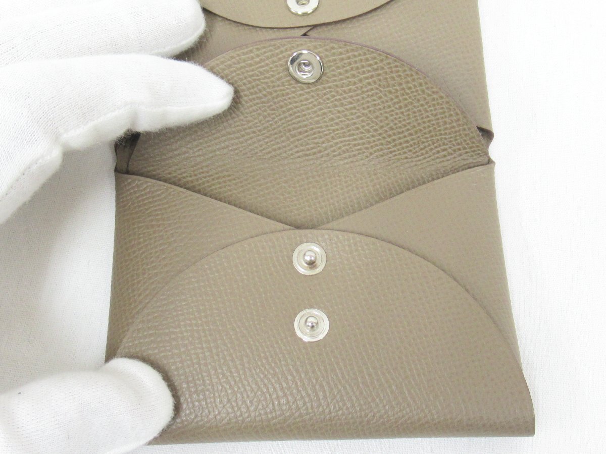 ■商品名:〇 未使用級 HERMES エルメス カルヴィ デュオ Calvi duo エプソン エトゥープ U刻印 2022年製 名刺入れ カードケース