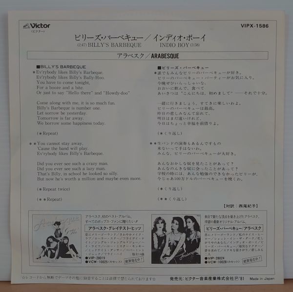 Title:Billy's Barbeque c/w:Indio Boy