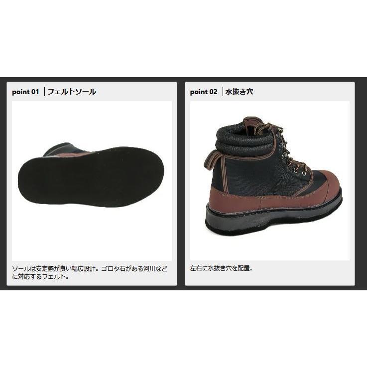 ストッキングウェダー用ウェーディングシューズ。ストッキングウェダーを着用して履くために、通常のシューズより大きめの設計。水抜き穴で排水性を確保し、フィット感と履き心地を追求。ワイドフェルトソールを採用し、安定感のあるウェーディングシューズ。●サイズ:3L●靴の実寸(cm):30~30.5●あなたの足サイズ(cm):28~28.5●底:フェルト※普段お使いのサイズをお選びください。(例:普段のシューズ→Lサイズ(26~26.5cm) ウェーディングシューズ(フェルト底)→Lサイズ) ★複数在庫あります。4548992215737 |