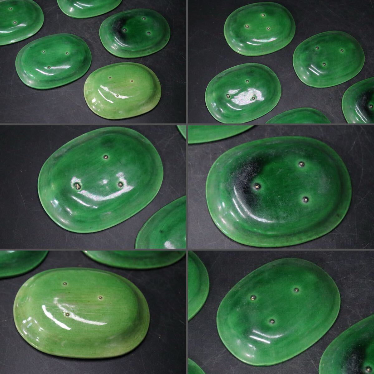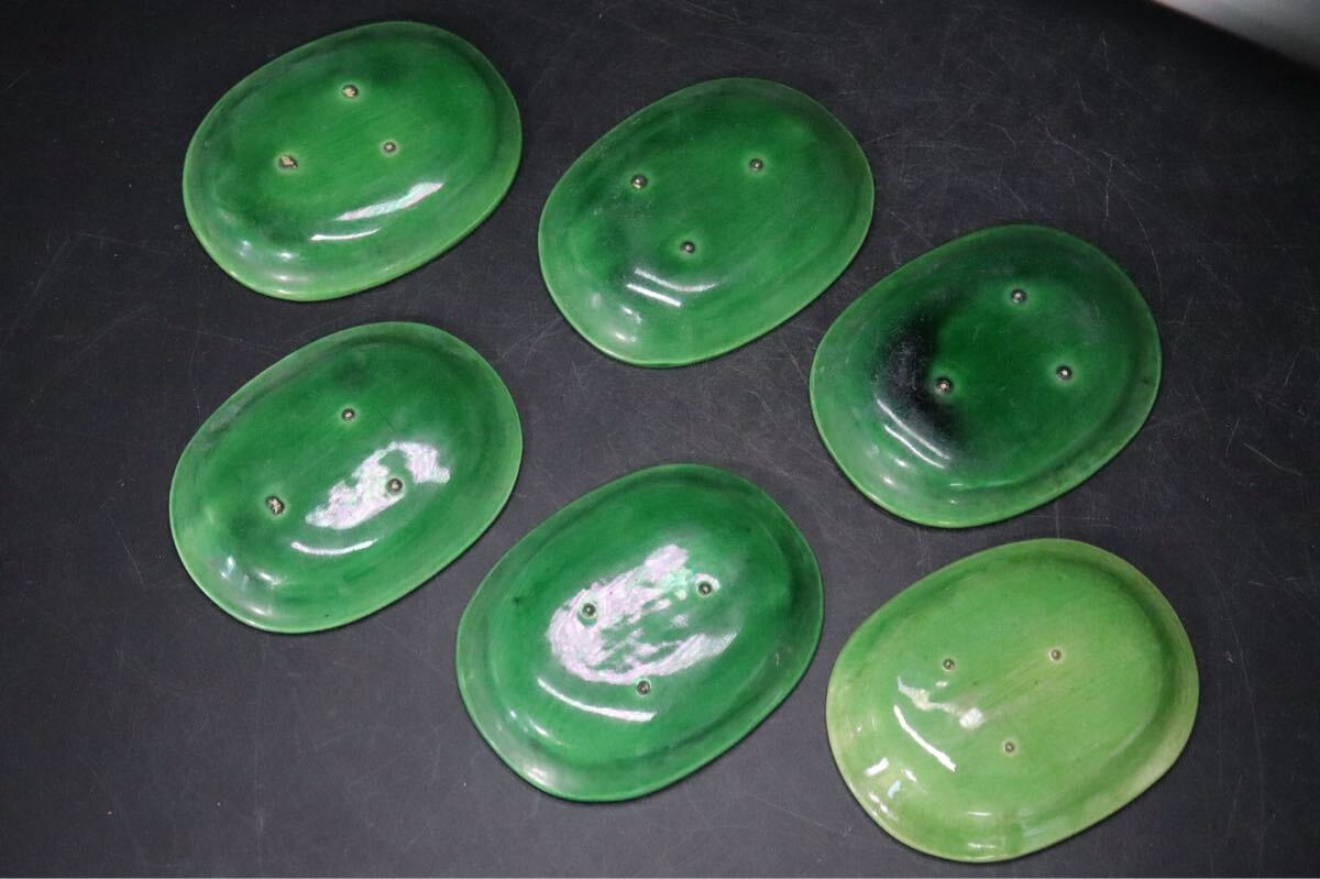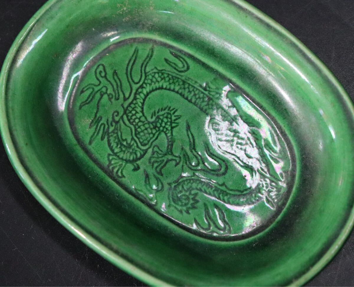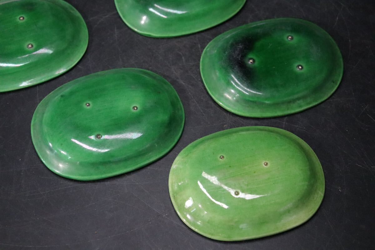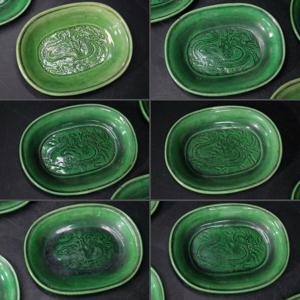 | 時代 珉平焼 緑釉 龍紋 豆皿 6客 / 茶器 煎茶道具 小皿 .B421 |