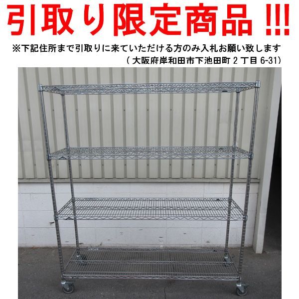 | 内 容 | 【入札への注意】 ※こちらの商品は引取り限定になり、発送は致しません 大阪府岸和田市下池田町2丁目6-31 (株式会社シン・コーポレーション) まで御来店いただける方のみご入札宜しくお願い致します。 ■エレクター メタルラック 4段 ■サイズ 約W150×D45×H170cm ※やや傷や汚れあり ※在庫のある商品になります 複数ご希望の場合対応致します。 |