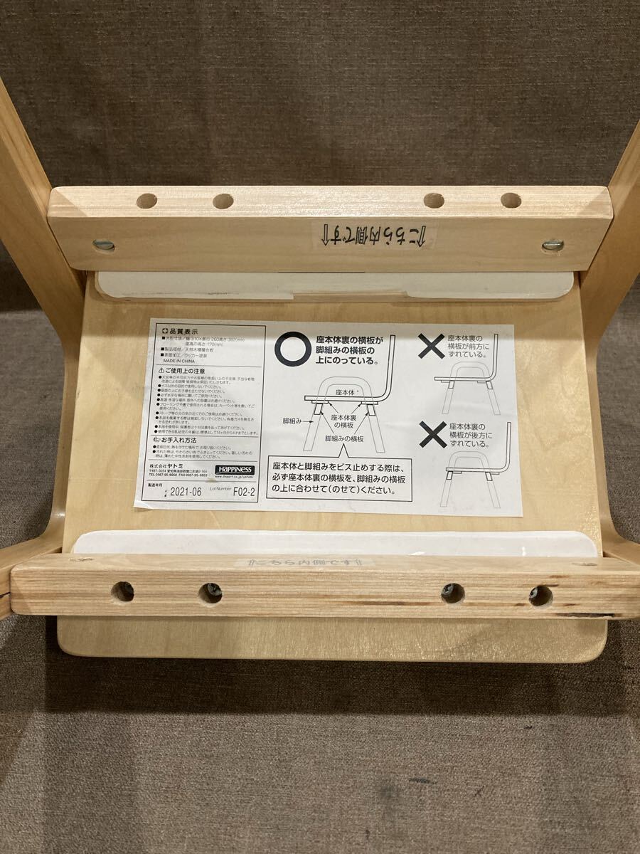 88 【2021製造】ヤトミ 子供用木製椅子 外形寸法/幅:310×奥行:260高さ:382(mm)座高の高さ:170(mm) 製品部材/天然木積層合板 あ