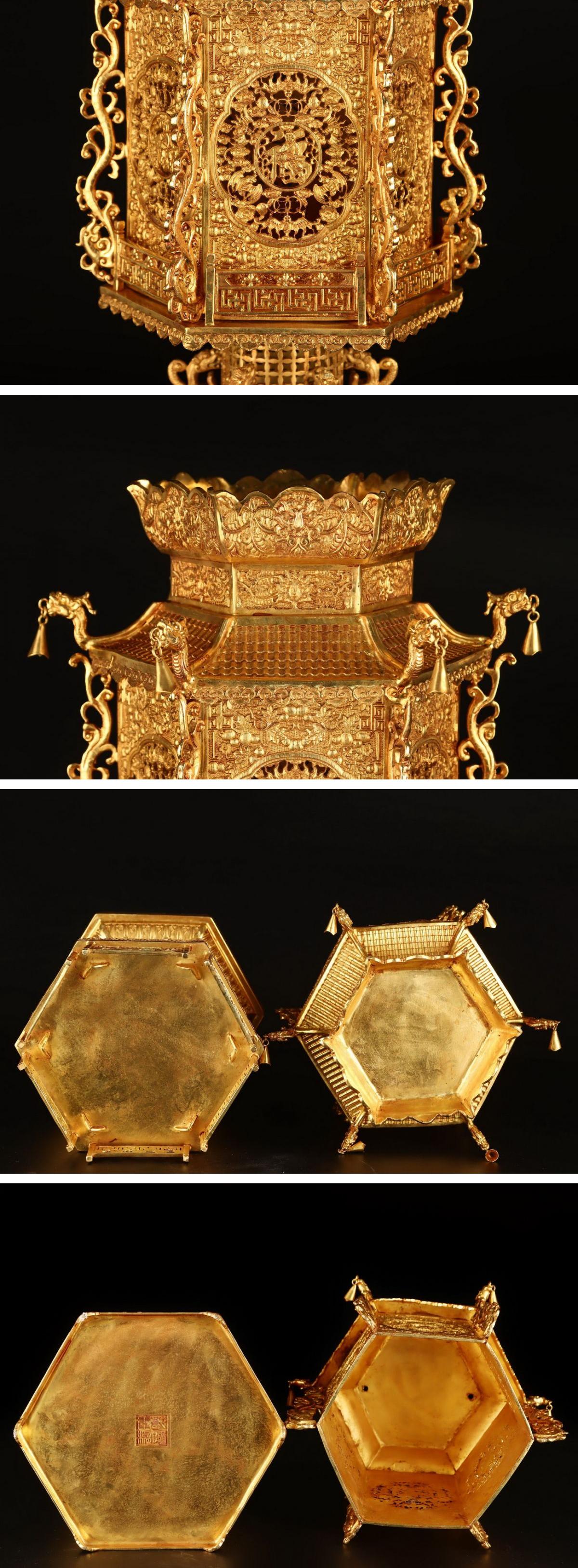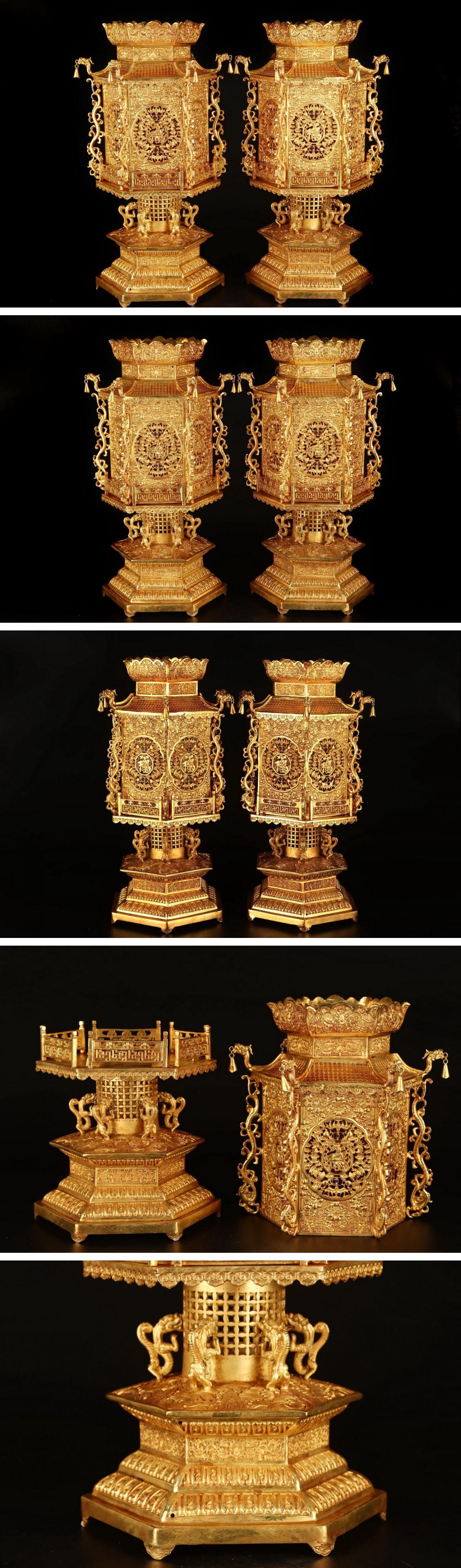 【清】関西某オークション購入 中国・清時代 銅金 六方宮灯 極細工 古置物 古擺件 中国古美術7L10-YD30