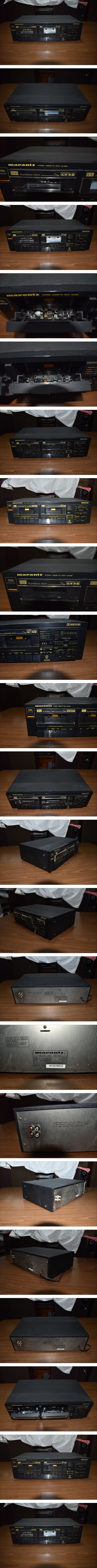 | 商品説明 | 名機 MARANTZ SD255 CASSETTE DECK マランツ SD255 ダブルカセットデッキ 中古 1台 です。 こちらは中古品のため、傷や汚れがあります。 動作確認できました。 (完全動作を保証するものではありません) なにぶん古いものなので、ご理解のある方のみ、入札願います。 経年による外観は、写真の通りです。 写真のカセットデッキのみです。(カセットテープは、付属しません) 程度は写真で判断願います。 下記の送料、その他欄をお読みの上、 これらのことを理解した人のみ ご入札願います。 商品内容 再生専用+録再のダブルカセットデッキ。 再生専用のAデッキと録再のBデッキを搭載しています。 ヘッドはどちらもスーパーハードメタルアロイを用いたヘッドを装備 しています。また、ダブルデッキに必要な走行性の均一化を達成する ため、AデッキにはBデッキの消去ヘッドに換えてダミーヘッドを装備 しており、走行性能やテープテンションの均一化を実現しています。 簡単な操作でダビングが行える用シンクロスタート機能を搭載しています。 この機能ではAデッキの再生スタートにシンクロしてBデッキの録音がスタ ートするため、ワンタッチ操作で失敗の内ダビングが可能です。 倍速ダビング機能を搭載しており、スイッチひとつで切換が行えます。 ダイレクトレベル録音機能を搭載しており、ダビング時にAデッキの出力は Bデッキの録音コントロールを自動的にジャンプしてダイレクト入力されま す。テープからテープへの録音なので基本的に録音レベルを必要する必要が 無く、最短経路で録音されることで音質劣化を防いでいます。 A-B連続再生機能を搭載しており、片方のデッキの再生が終了すると同時に もう片方のデッキの再生がスタートします。これによりエンドレスの連続長 時間再生が可能です。 ノイズリダクションシステムとしてドルビーB/C NRを搭載しています。 オートテープセレクターを搭載しており、A/Bデッキともテープを装着する だけでテープポジション(メタル、クローム、ノーマル)が自動検出して設定 されます。設定されたポジションはLED表示されます。 タイマースタンバイ機能を搭載しており、タイマーを併用することで留守 録音が可能です。