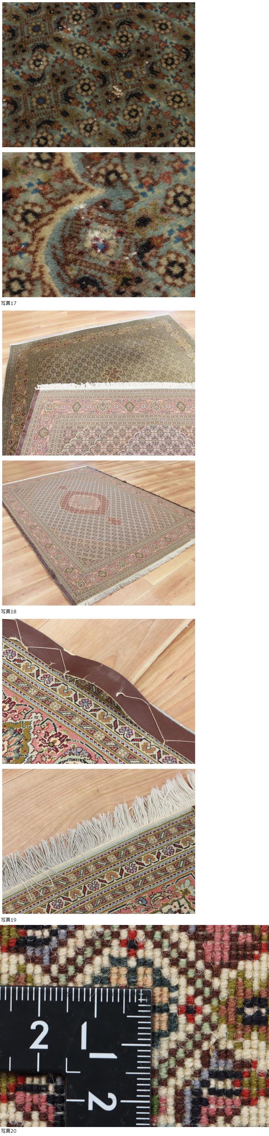 サイズ(約) 202×302.5㎝(フリンジ含まず)/厚み 6㎜ 付属品 - 最高級ペルシャ絨毯 タブリーズ マヒ柄 王宮スタイル 特大判202×302.5㎝ 総手織り49万ノット ウール100% 伝統名作 最上質絨毯! 本物保証 最高級タブリーズペルシャ絨毯のご紹介になります! 代表的王宮柄「マヒ」柄、一番人気の作品になります! 特大判で雰囲気最高の作品です! 状態、使用感、ヤケ等ございます。 気になる箇所は画像に掲載しておりますので、吟味いただき、現状一点物となりますので、ご理解の上入札の方お願いいたします! 大事にしていただける方の入札お待ちしております! 一度人手に渡ったものがほとんどの為、生活臭や保管臭等、臭いの付着があるものもございます。 臭いに関しては感じ方に個人差があるため、臭いが強いものに関しては説明欄に記載いたします。以上をご理解の上ご入札をお願いいたします。 絨毯に関しましては基本的にキャンセルはお受けできかねます。十分ご検討いただき、ご納得いただいた上でのご入札をお願いいたします。 |