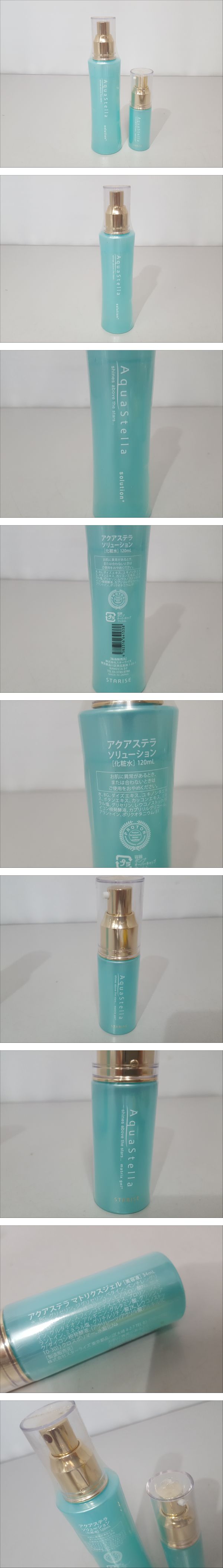 ※佐川急便の場合、離島など別途中継手数料がかかる地域が御座います。 その場合はお振込みを追加でお願いする場合が御座います事、 事前にご了承の程、宜しくお願い致します。 [商品名] 1円スタート 【新品未開封】STARISE スターライズ AquaStella アクアステラ ソリューション 化粧水&マトリクスジェル 美容液 合計2点 ※輸送中、中身の状態が変化(割れ等)する可能性が御座います事 予めご了承下さいませ。 [状態] 合計2点の新品になります。 倉庫保管の為神経質な方のご入札はご遠慮下さい。 状態は写真で御判断願います。 ※未開封品は、中身の確認は致しておりません。 又、製造時期が分からない為、経年劣化等が有る可能性が御座います。 お肌に合わないときは使用を中止し、皮膚科専門医にご相談ください。 また、それらをご使用になった事により生じたいかなる損害についても責任を負いませんので、 御了承の上、御入札の程宜しくお願い致します。 付属品は写真のものが全てです。 記載の無い状態がある場合も御座いますが、写真でご判断下さい。 [状態ランク] S