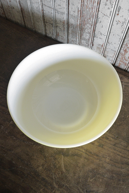 | 商品説明 岡山STAGEより出品します。アメリカで買い付けたアンティークPYREXミキシングボウルです。パイレックスは1851年創業の大手ガラスメーカー、コーニング社で開発された世界で初めての耐熱ガラスブランドです。アンカーホッキング社のファイヤーキングとほぼ同時期に作られた製品は「オールドパイレックス」と呼ばれ1940〜70年代に作られたものでコレクターの間で人気を集めているのはこの時代のものがほとんどです。現在ではミルクガラス製品の製造は終了しており非常に稀少です。人気のミキシングボウルになります。デザイン性が高く現地でも人気があります。大きめサイズでお部屋からショップまで幅広くディスプレイしていただけます。状態ですが、経年による小傷や擦れ、汚れ、塗装の剥がれ、多少の黄ばみ等の使用感はございますが雰囲気を損なうようなダメージはなくアンティークならではの良い状態かと思います。あくまでアンティーク観賞用ですのでご理解いただける方のご購入をよろしくお願い致します。 サイズ 高さ約11,5cm、直径約27cmです。 予定発送方法 保障の利く佐川急便の元払い100cmサイズ料金で行います。 コメント 店頭でも販売しております。タッチの差で売れた場合はご了承下さい。■落札後の連絡及びご質問の返答は基本的に午前10時~午後6時までとさせて頂きます。毎週水、木曜日、年末年始や時間外でのご連絡は休み明け及び翌日のご連絡となりますので予めご了承下さい。 STAGEホームページ https://stage-stage.ocnk.net// |