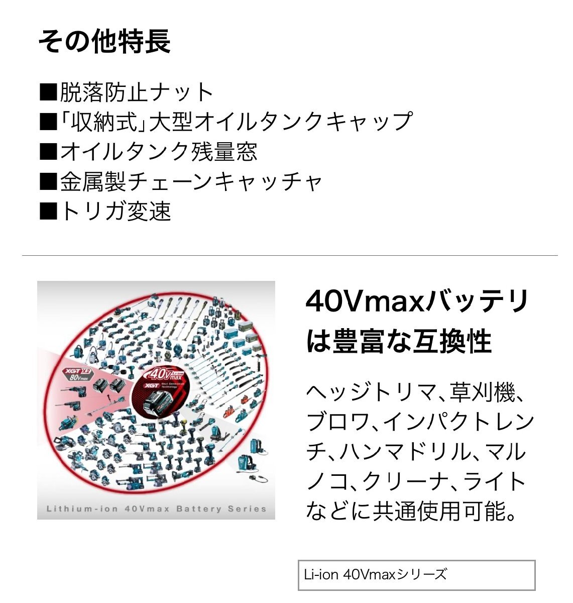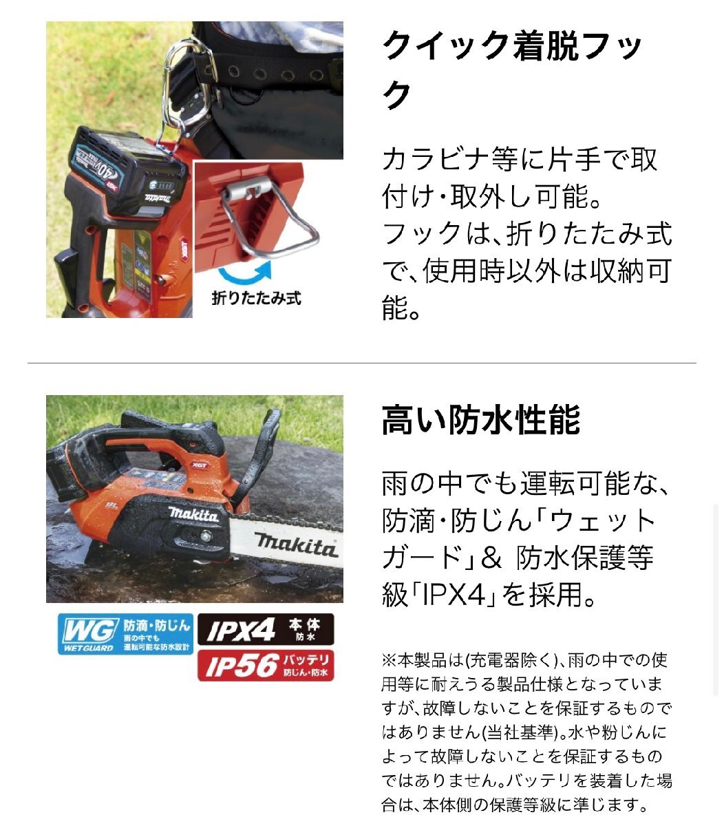 【品名】マキタ 40Vmax 充電式チェーンソー 赤 本体のみ | 返品・保証について |