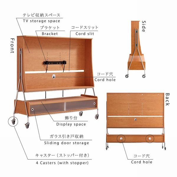 キャスター付きテレビスタンドシェルフ! ステンレスとナチュラルな木目を組み合わせたスタイリッシュなデザインでお部屋を彩ってくれます。 キャスター付きなので、移動するのも楽々です。 |