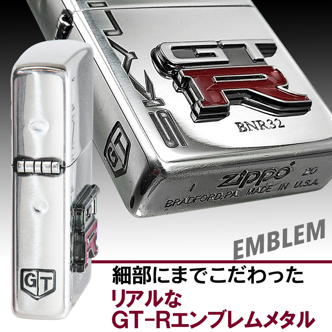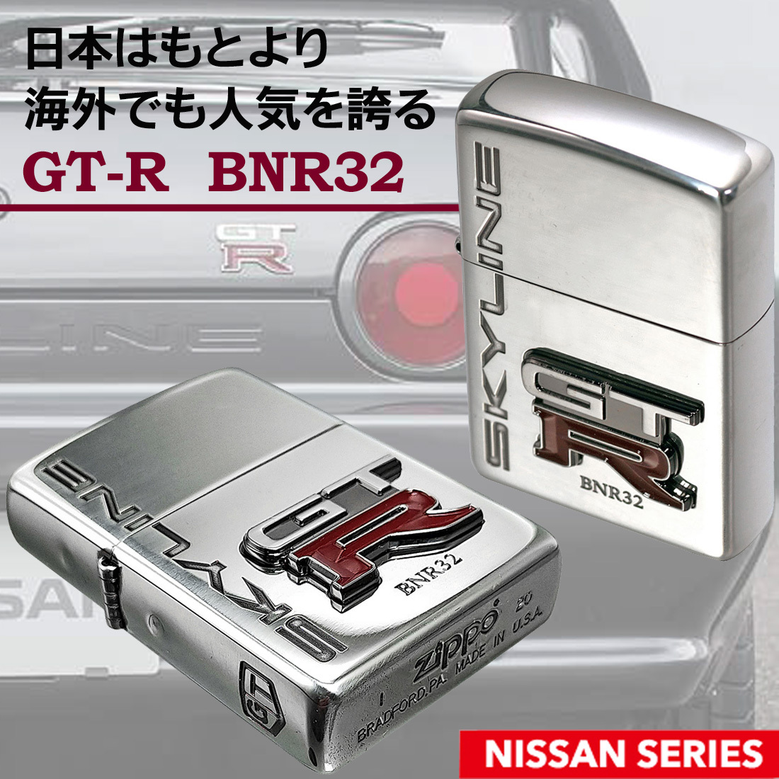 大人気日産シリーズにスカイラインGT-R 伝説第二章の幕を開けた[BNR32] のリアルエンブレムメタルZIPPO が登場!