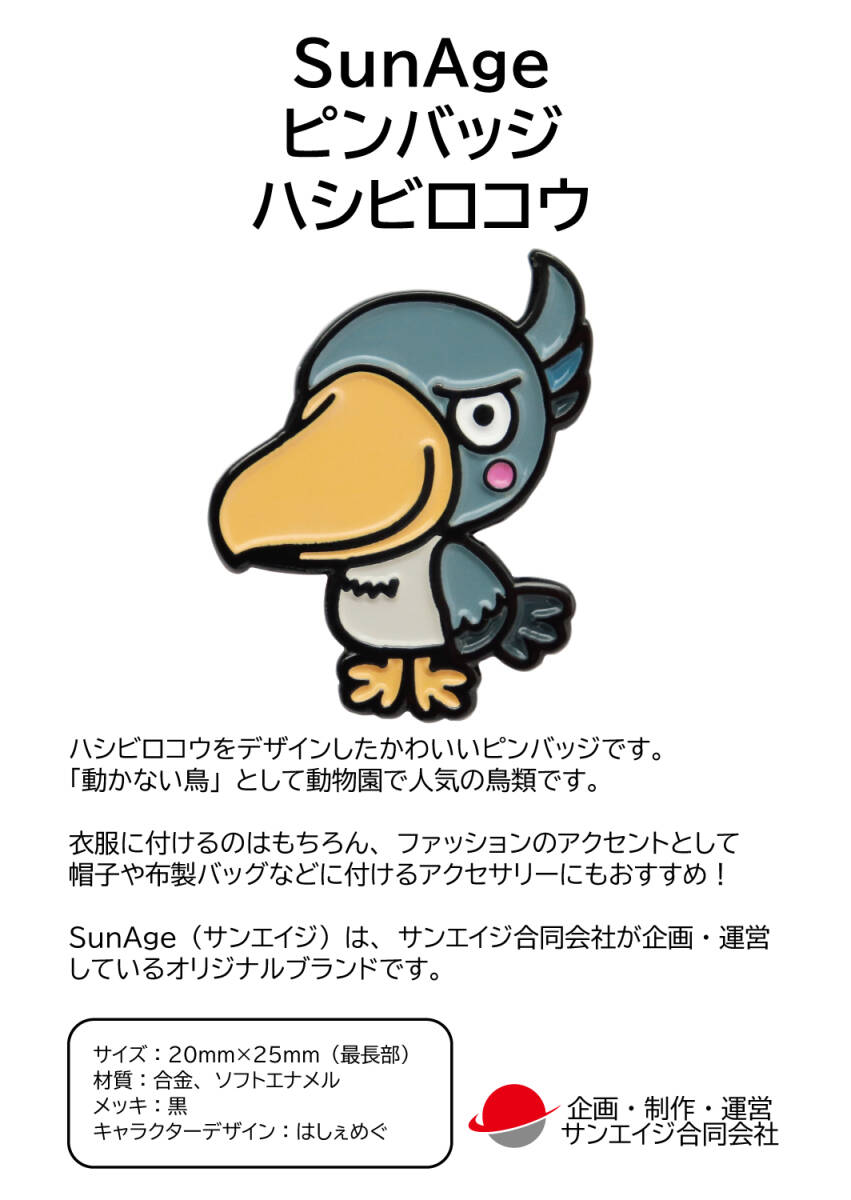 ハシビロコウをデザインしたかわいいピンバッジ(ピンズ)です。| 出价者 | 信用 | 价格 | 时间 |
