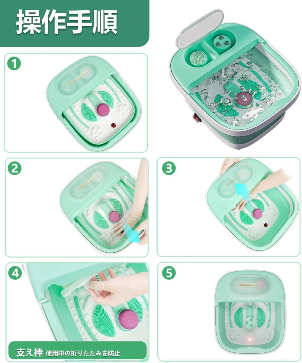 | 【3 つの美足置き換え】この足湯には 3 つの取り外し可能な足用アタッチメントが付属しています。足の角質や汚れを除去し、疲れた足をリラックスさせるのに適した設計となっており、日常的な足のケアを手軽にサポートします。 【バブル機能搭載】: 気泡口からジェットバスのようなバブルが出て、底の突起とともに足裏をほぐしてくれます。温めると同時に刺激を加え、角質を柔らかくすることができるので足のお手入れが簡単に行えます。 【お風呂を沸かすよりも節約】: 1日1時間使用した場合の1ヵ月の想定電気代は約262円。お風呂を沸かすほどでもないけど、疲れを癒したい。そんな時に気軽にお使い頂けます。 【コンパクト収納】: 使わないときや収納時にはコンパクトに折りたたみが可能。折り畳み時は約 6.5㎝と薄く、重量も約 1.66㎏。持ち手も付いているので、持ち運びやすい設計です。女性でも足湯器を簡単に操作できます。 【プレゼント】: いつも温かく見守ってくれるお父さん、お母さんに贈るプレゼントは、意外と頭を悩ませるものです。日頃の感謝の気持ちを伝える、そのシンプルな想いをカタチにしてみましょう。家族や友人に喜んでいただける、思い出に残るプレゼントとしてお届けいたします。自分へのご褒美は勿論、父の日、母の日、敬老の日の贈り物にも最適です。L141 |