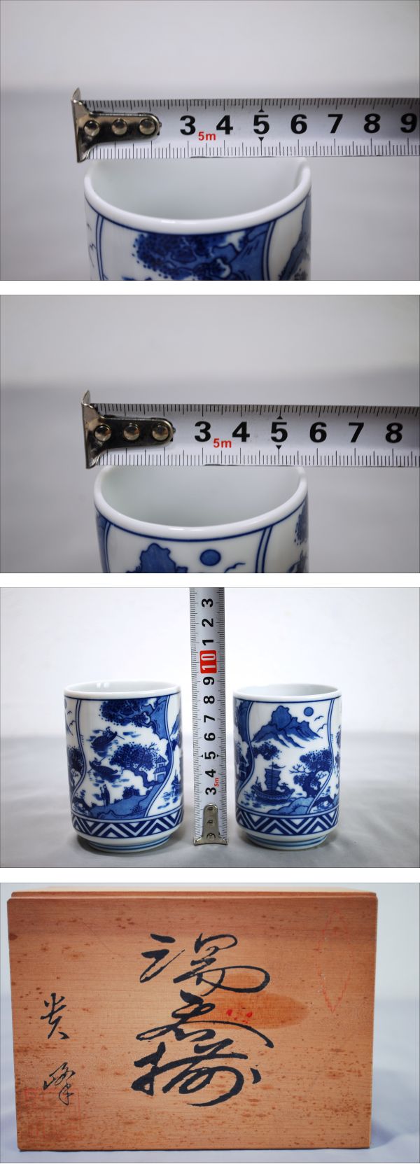 | 商品: 光峰 湯呑 2客 共箱 サイズ: 画像をご参考下さい。 重量: 大約148g 家庭用はかりですので誤差はあります。 中約113g 家庭用はかりですので誤差はあります。 ※目立つ傷等は無いように思います。共箱・包装類は傷・汚れなどございます。 画像のものだけです。 「ノークレーム・ノーリターン」を納得された上でのご入札をお願いいたします。 送料は下記に送料表がございますのでご参考下さい。 ※長期保管、経年劣化がある場合もありますので、よく画像にてご判断お願い致します。ご理解いただける方のみ入札お願い致します。 | ||