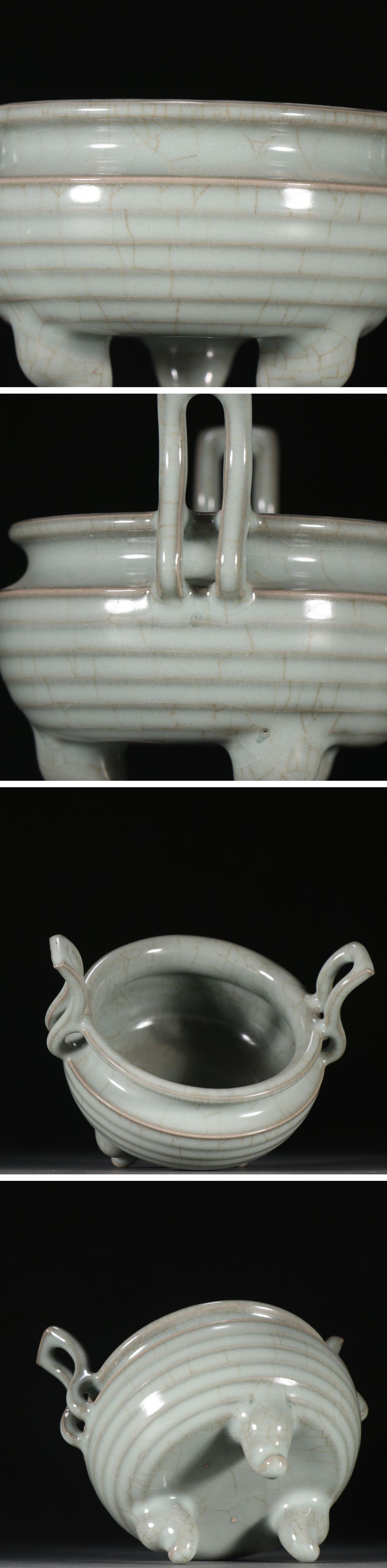 【清】関西某オークション購入 中国・宋時代 汝窯 三足沖天耳香爐 極細工 古置物 古擺件 中国古美術7L12-TS4