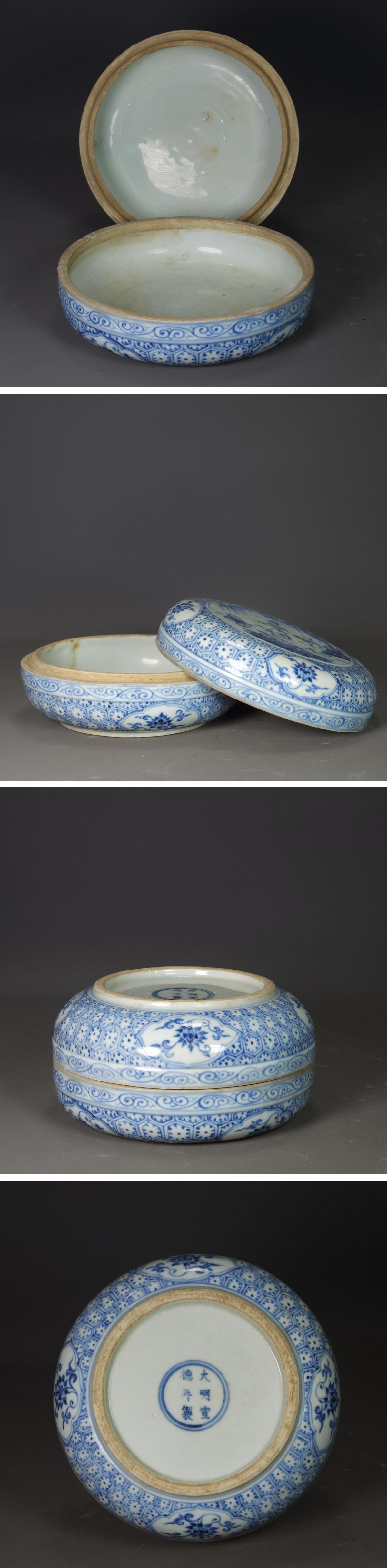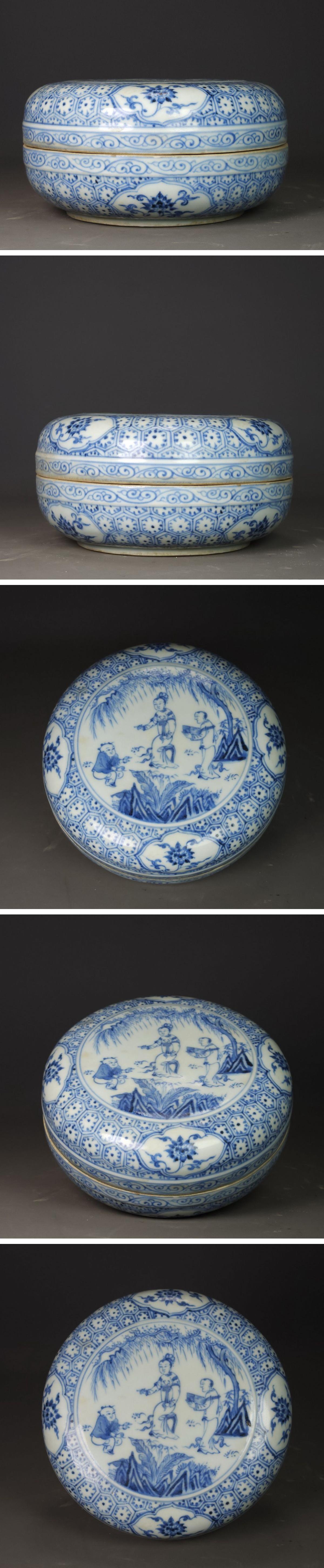 【清】関西某オークション購入 中国・明時代 大明宣徳年製 青花人物紋香合 極細工 古置物 古擺件 中国古美術7L12-SY3