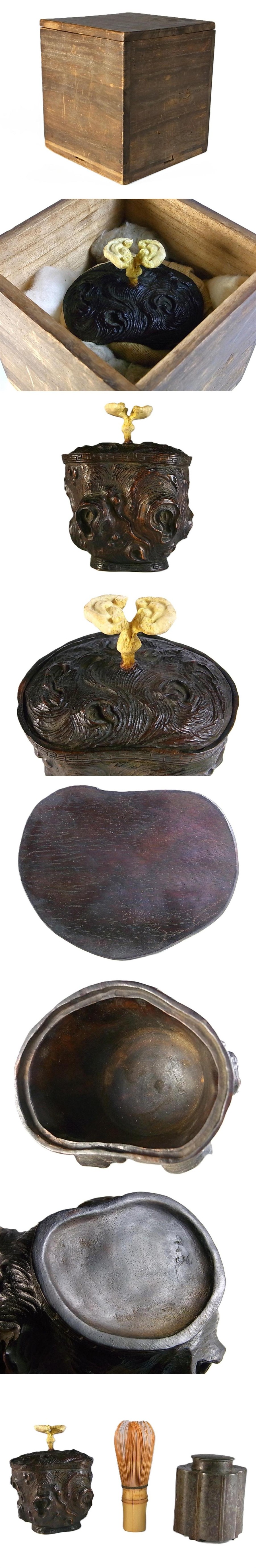 極上なる唐木を刳り貫き天然の杢目を木彫にて再現した