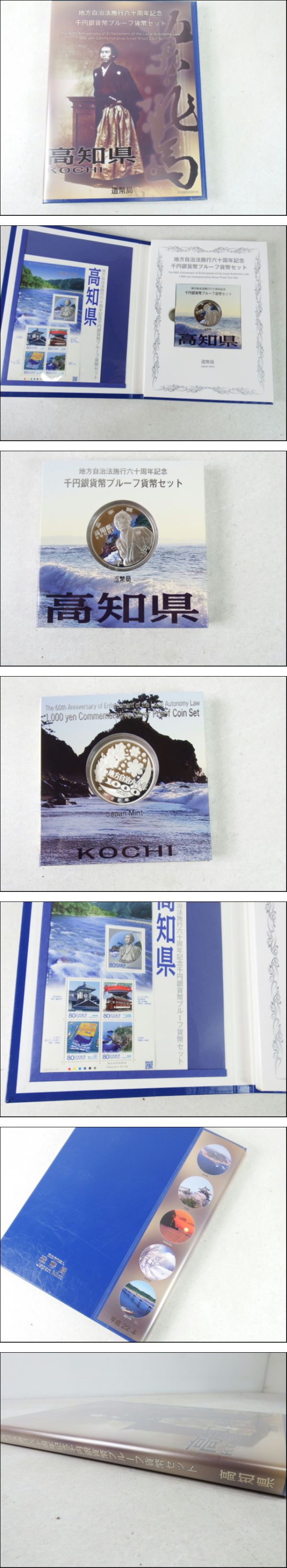 ■■⑨ 地方自治法施行60周年記念 高知県 1000円銀貨 プルーフ貨幣セット 記念切手(80円)5枚付 造幣局■■ | |||