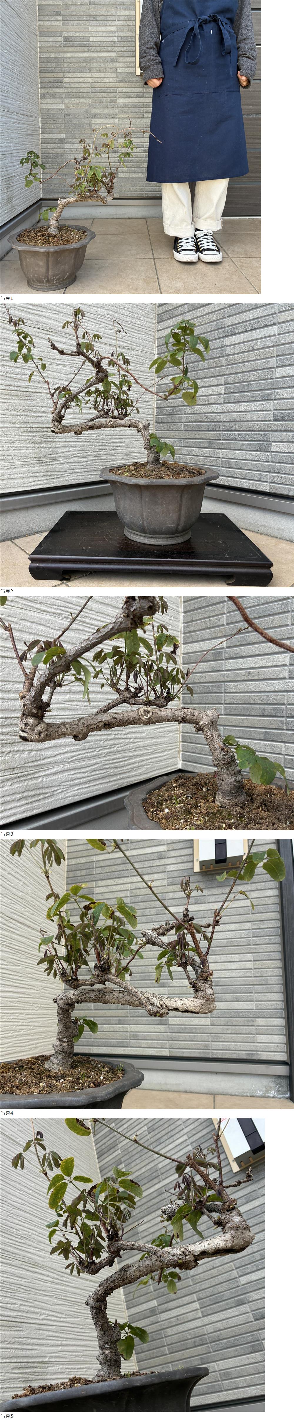 | ★美しい折り返しレア樹形!★『アケビ(あけび)Akebia quinata』の盆栽 樹高約63cm(鉢底から) |