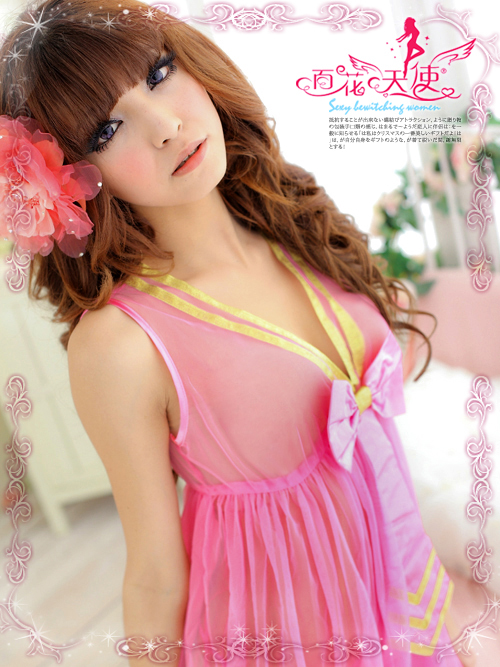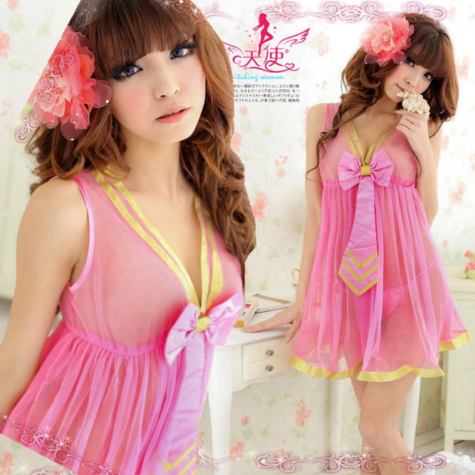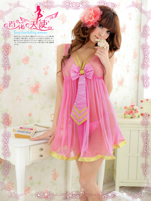 ☆甘いチェリーピンクのワンピース風ベビードール、フロントの大きいリボンがポイント。