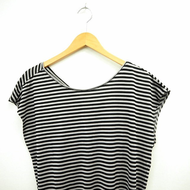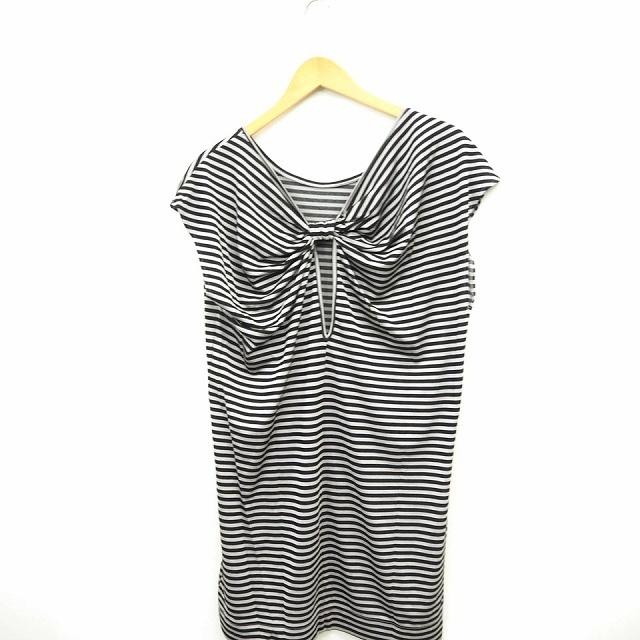 ラ トータリテ La TOTALITE ワンピース ボーダー 丸首 ミニ ショート フレンチスリーブ グレー ブラック 灰 黒 /MT13 レディース