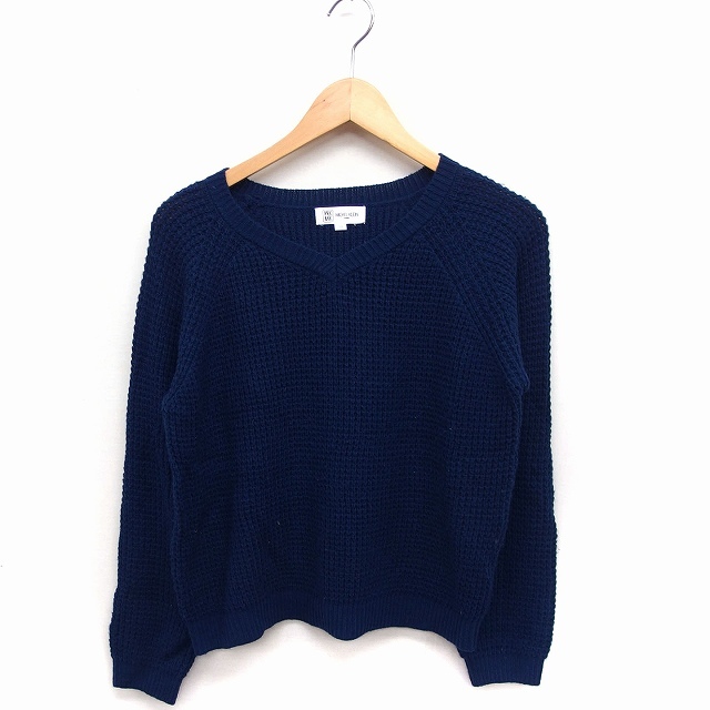 エムケー ミッシェルクラン MK MICHEL KLEIN Vネック ニット セーター 長袖 ローゲージ 無地 38 ネイビー 紺 /FT27 レディース