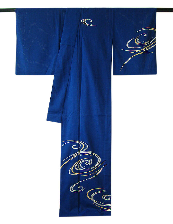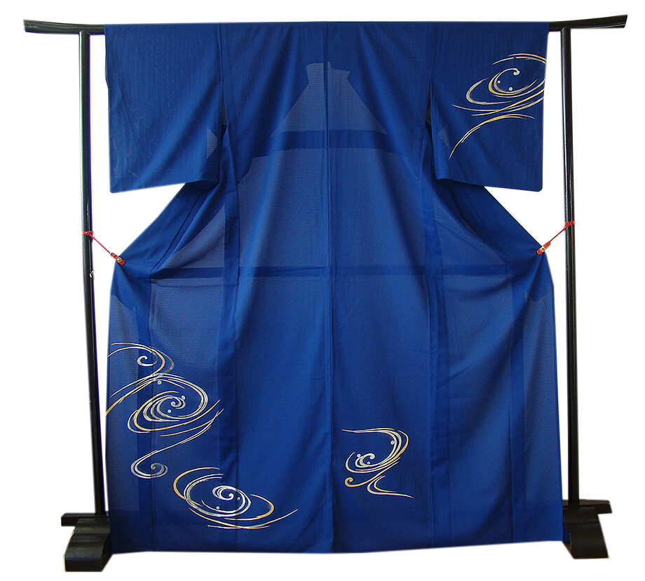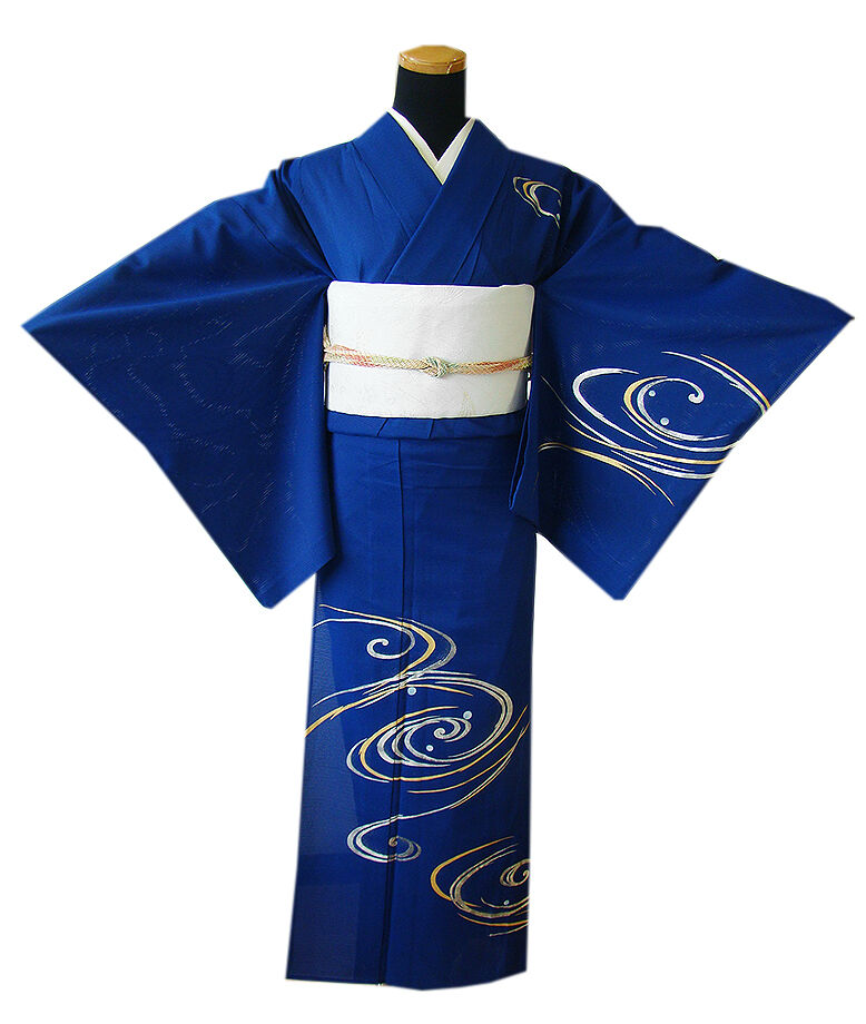 | 商品説明 | こちらのお品は夏物でございますので、7月~8月にお召頂ければと思います。 「絽」と言えば、紗と双璧を成す夏のお着物の生地で、 その最大の魅力は絶妙の透かし加減でございます。 清涼感溢れる地の風を通すしなやかさは夏に着物を着るという贅沢を 快適に愉しませてくれる事でしょう。 着物には、大きく分けて「袷(あわせ)の着物」と「単衣(ひとえ)の着物」と「夏着物」があります。 反物(表地)を着物に仕立てるときに、裏地類をつけるものを袷の着物、 つけないものを単衣の着物と呼び、胴裏や八掛といった裏地がつかない一枚ものの着物です。 また裏地がないため、座る時などにヒップのラインが目立たないよう、 居敷当て(いしきあて)の生地をつけることもあります。 居敷当ては付いておりません。 しなやかな手触りの滑らかなさらっとした肌触りは絹と間違ってしまいそうな「絽ちりめん」の 洗える高級ポリエステルの生地で涼やかな風合いを醸しております。 綺麗な紺瑠璃色地に流水柄の豪華な金銀彩加工染が小粋な着物姿を演出しております。 帯はポリエステルの袋帯(六通柄)でしっかりとしており扱い易く〆易く、 白練色地に金銀糸の豆花や草木柄の織柄がお顔映りも華やかな帯姿を奏でております。 帯〆は平組、赤、水色、肌色等のの編み込みに金ラメ入りの組紐となっております。 |