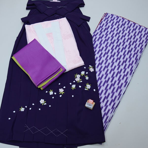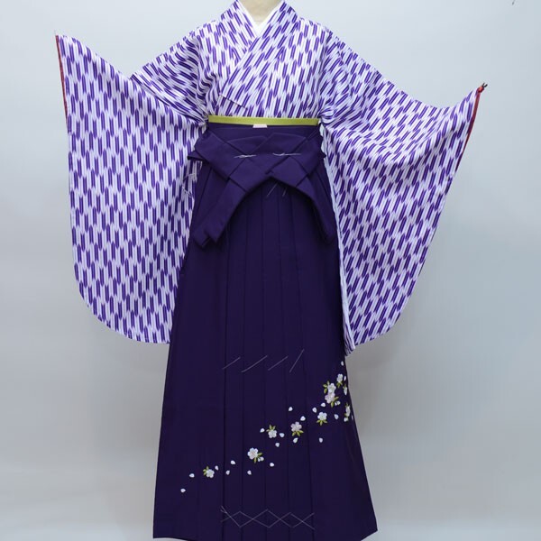 | 項目 | 着物袴フルセット (適合身長:135cm~143cm:ジュニア用へお仕立て直し致します。) ・二尺袖着物 ・二尺袖長襦袢(半襟付き) ・袴 ・袴下帯(浴衣帯にも使用できます。) |