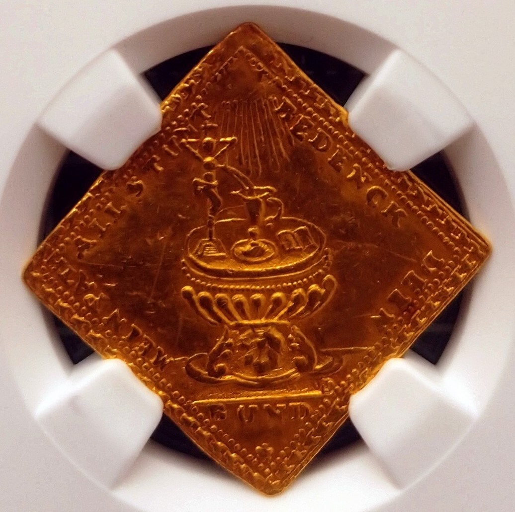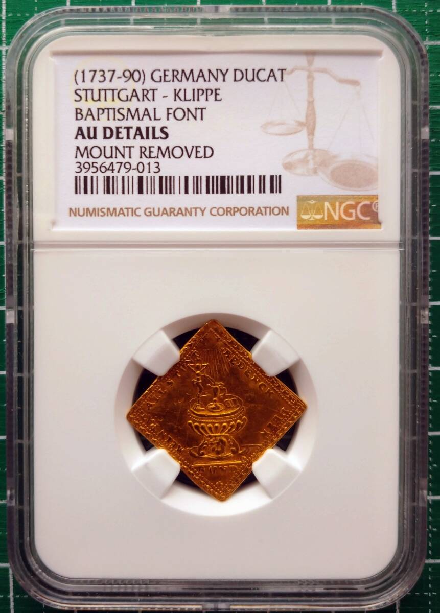 | ドイツの都市景観のダカット金貨もいろいろありますが、今回の出品物は大変珍しいもので、通常のカタログにも記載されていない(Ebner等には記載あり)シュトゥットガルトの都市景観で、なおかつクリッペ型のダカット金貨です。 シュトゥットガルトの都市景観ダカット金貨のクリッペ型は2種類存在します。そのうちの一つは裏面が牝馬と子馬のもの(Ebner#7)。今回の出品物は別の一つで裏面が洗礼とプロビデンスの目のもの(Ebner#21)となります。両方ともJ.Danielの彫刻ですが、表のシュトゥットガルトの都市景観もよく見ると異なっていて、簡単な見分け方は尖塔が2つ(#21)か3つ(#7)かということになります。 現在鑑定されているものは全部で4枚。今回の出品物はPCGSのMS63、NGCのMS62のそれぞれ1枚についでの、AU-Dの1枚で世界ランク第3位(同じグレードのものがPCGSにも1枚有ります。)となります。鑑定の結果、残念ながらAU-D判定(その理由は頂点部のプロビデンスの目が、マウントの際に削られたことによると考えています。)となりましたが稀少性は充分ではないでしょうか。D判定で価格が激減することは周知の事実ですが、世界にたった4枚しかない場合も同様に考えることはできないと思います。(鑑定数は2025年11月12日現在) 数多くの出品物の中から、私の商品に興味を持って頂きありがとうございます。 今まで数多くの未鑑定品をPCGSやNGCの鑑定に出してきましたが、ただの1枚も偽物はありませんでした。この鑑定眼、審美眼はセールス・ポイントになるのではないかと考え、神秘的なコインの世界で、深海の沈没船よりお宝を探し当てるような活動がしたいと願い、屋号をコイン・サルベージとし、あまり世間に知られていないコインや、未鑑定でもグレードの高そうなものを鑑定に出してから紹介したいと考えるようになりました。 恥ずかしいので「超稀少」とかは謳いませんが、世界唯一品をはじめとして、本当に残存数枚のものをお届けしたいと考えています。 当然PCGSかNGCの鑑定品しか出品しませんし、もちろん鑑定番号を隠すようなこともしません。興味を持たれた方、特に本物が解る方よろしくお願いします。 本品は自身でNGCに鑑定に出したものですので偽物の心配はありません。 COIN SALVAGE | |||