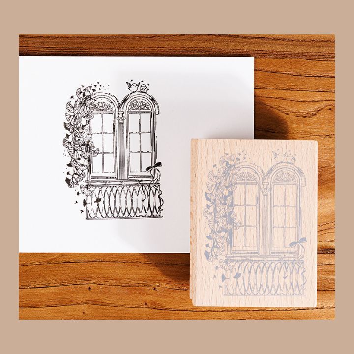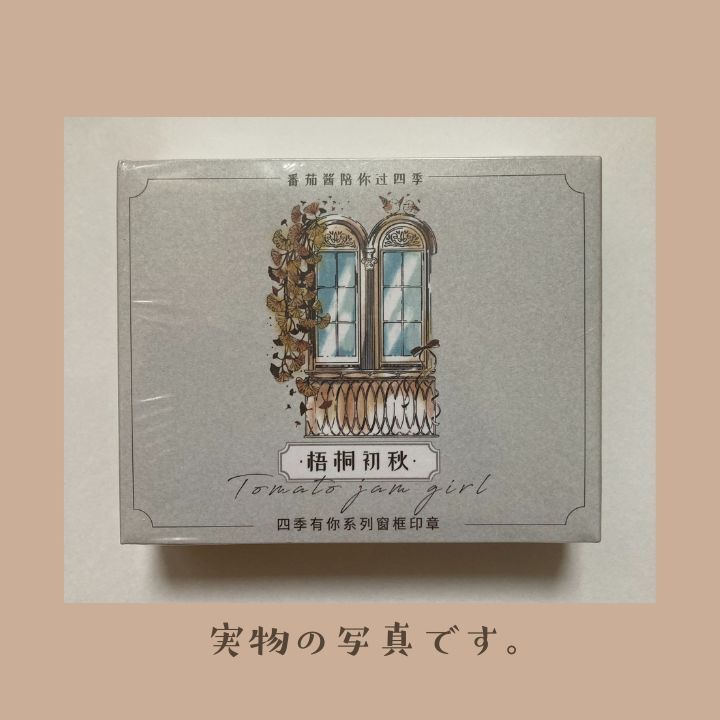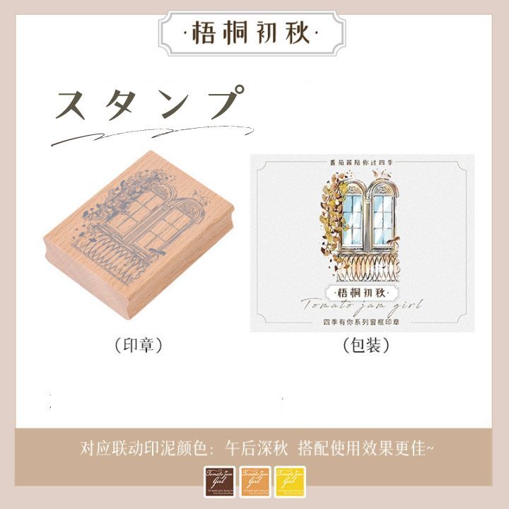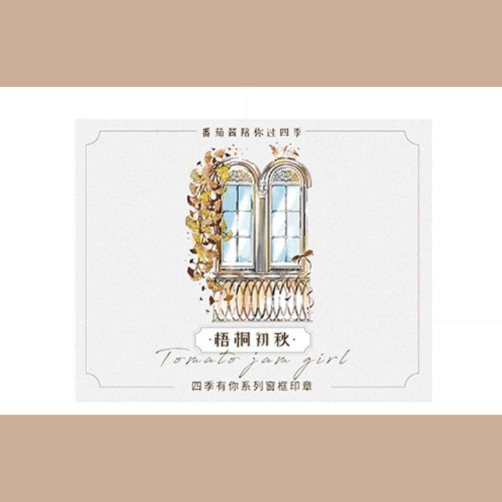梧桐の落ち葉が寄り添う窓辺のスタンプです。