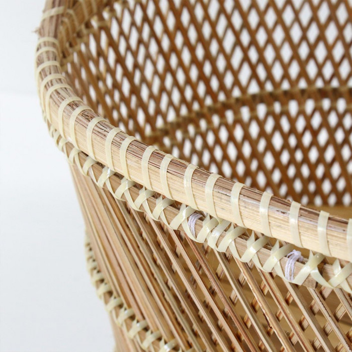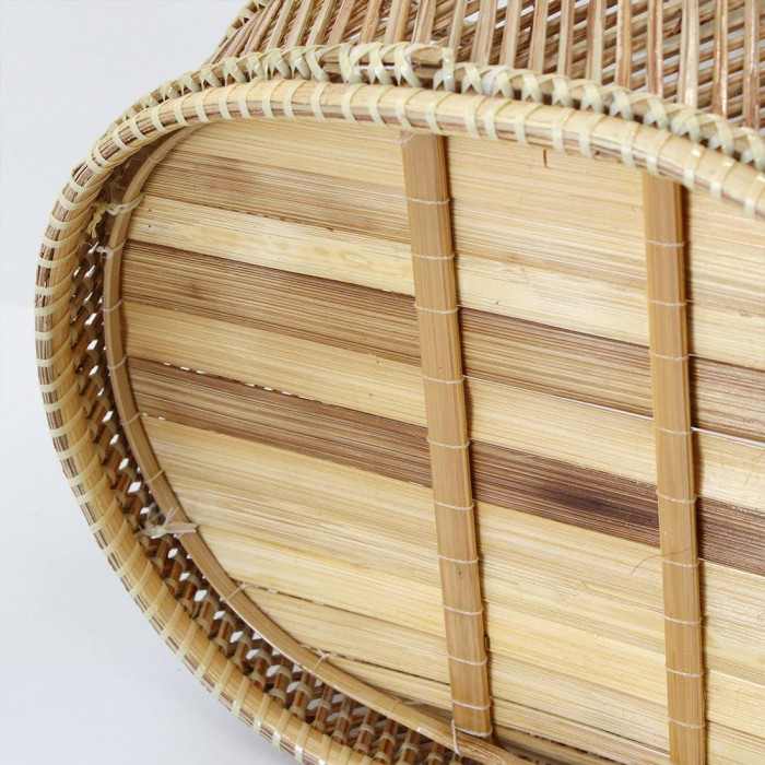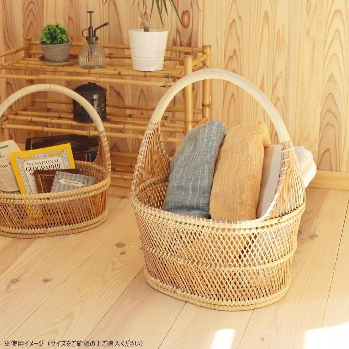 | 職人手作りの温かみを感じる素材感は、お部屋のインテリアに合わせやすいです。小物をまとめたり、植物を入れたり、お部屋に合った様々な使い方が楽しめます。手持ち部分にはビニールが巻いてあり持ちやすくなっています。 |