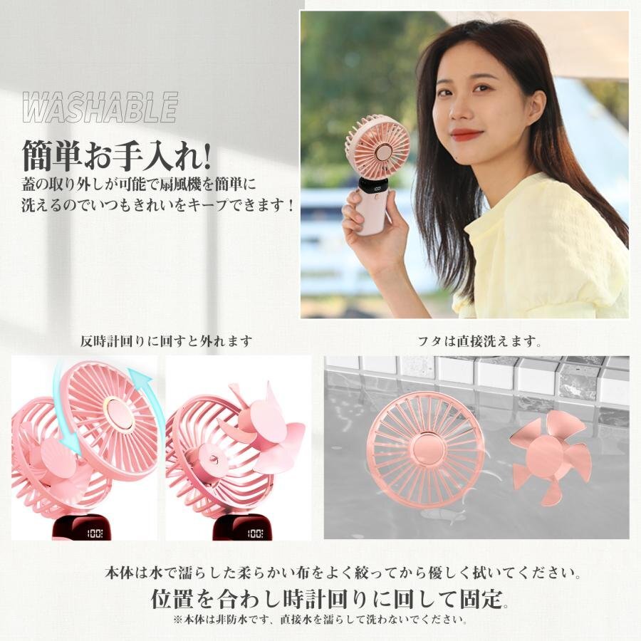 ★オススメポイント★ 年々暑くなる暑さに負けない!大容量ハンディファンが登場! ◎使い方は様々!手持ち、首掛け、卓上扇風機、スマホスタンドとしてもお使いいただけます。 ◎風量調節は5モード搭載!微風-弱風-中風-強風-オートループ(微風~強風モードを繰り返す)とお好きな風量で楽しめます! ◎うれしいストラップ付属!首に掛けて使用することでハンディなのにハンズフリーに! ◎重さわずか約190g!手持ちでも手に負担をかけにくい! ◎台座は折畳タイプなので、卓上扇風機に早変わり!さらに台座にスマホすると、動画などを涼しく快適に楽しめます。 様々なシーンで大活躍 ◎キャンプや旅行などのアウトドアに・・・ ◎通勤時やお買い物中などのちょっとした時間に・・・ ◎連続稼働約16時間!充電残量もLED画面に表示されるので長時間使用も安心! |