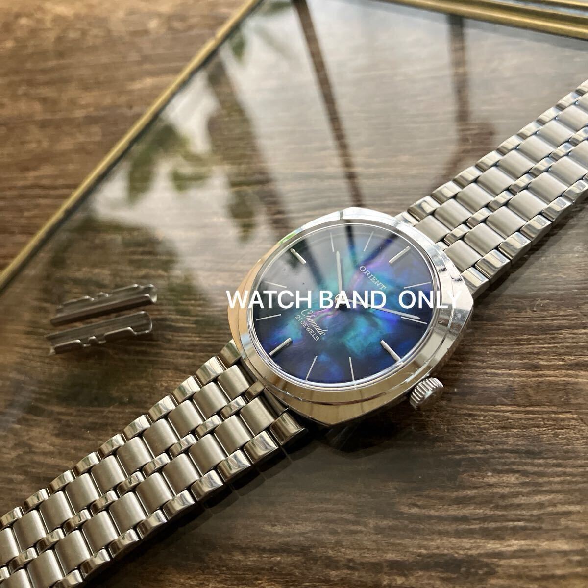 現在は残念ながらEPSONの完全子会社になってしまいましたが、落札しました鎖は当時のオリエントのトノー型のケースに付ける予定です。