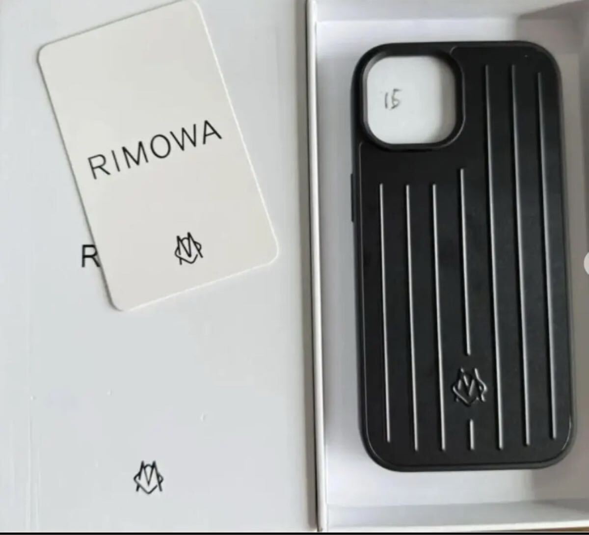 RIMOWAのストライプデザインのブラックiPhoneケース。