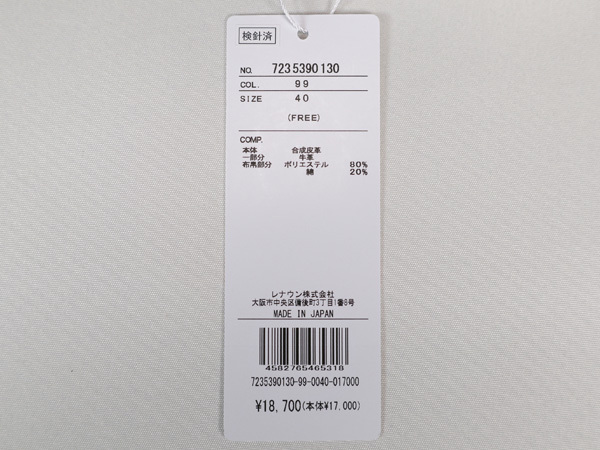 | ■品質/合成皮革 一部分:牛革 布帛部分:ポリエステル80% 綿20% |