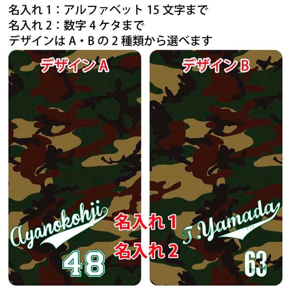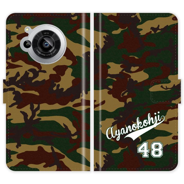 AQUOS R7 SH-52C A202SH 対応、迷彩ユニフォームのデザインに背番号の名入れができる手帳型ケース